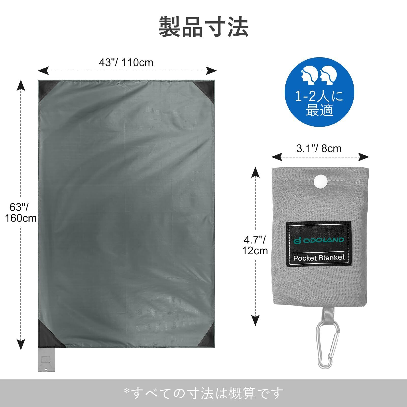 【ポケットサイズ】: ブランケットの隅にある一体型収納袋が含まれています。収納サイズ 8x12cm、片手でつかむことができます。
