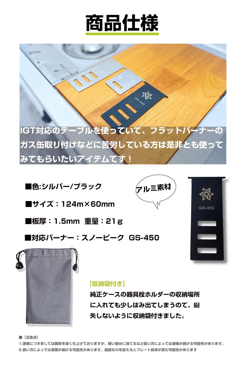 【操作性が改善】高さ3段階で装着可能、IGT対応のテーブルを使っていて、フラットバーナーのガス缶取り付けなどに苦労している方は是非とも使ってみてもらいたいアイテムです!