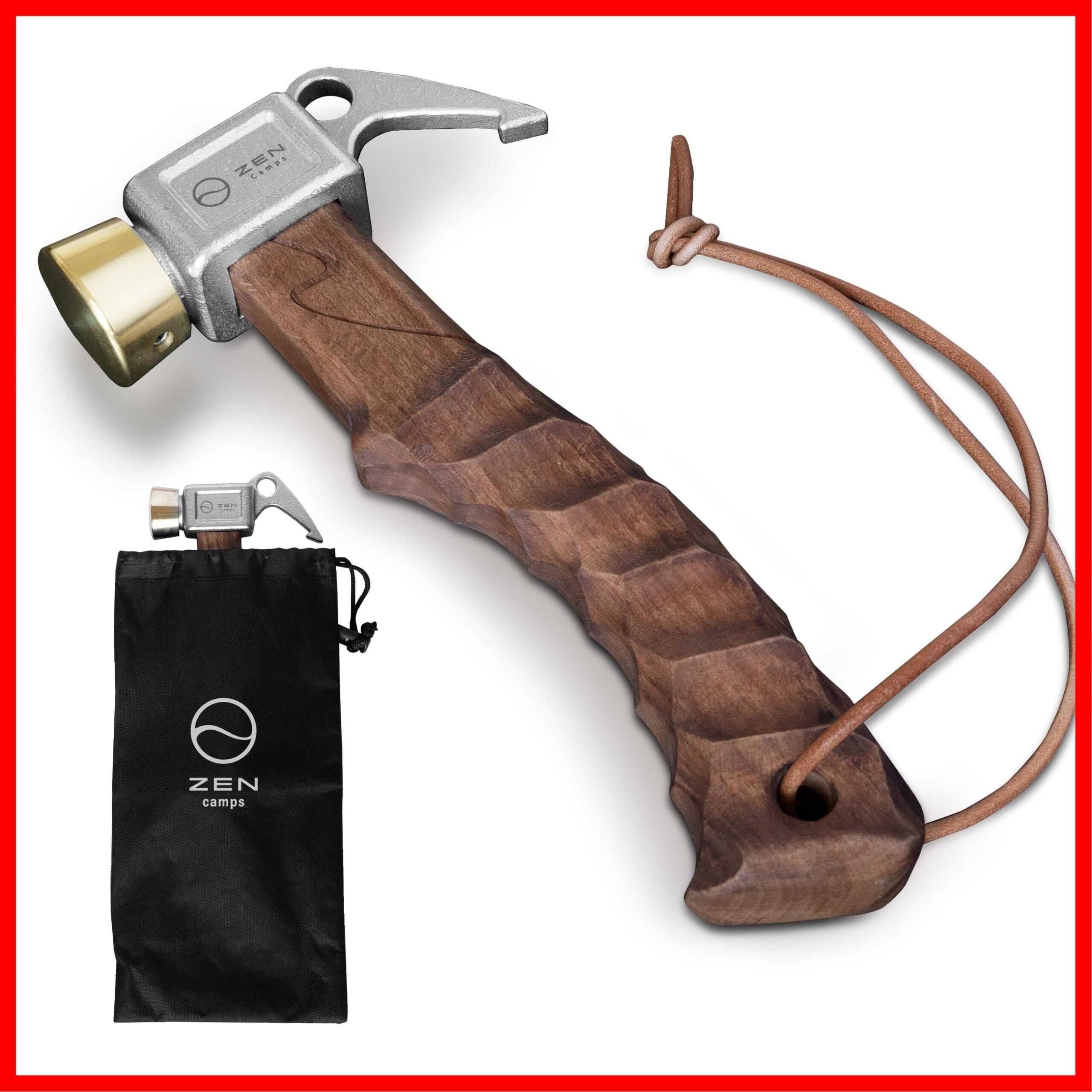 ZEN Camps ペグハンマー ショートハンマー 軽量 小型 コンパクト キャンプ 木製ハンドル 名栗加工 真鍮ヘッド(榉木(オイルステン))