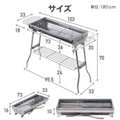 【商品詳細】本体サイズ (約)W95.5×D33.5×H70cm(組立時) 、重量:(約)4.8kg 、材質:本体/ステンレス鋼製、焼き網/鉄クロムメッキ、適合人数:5~15人