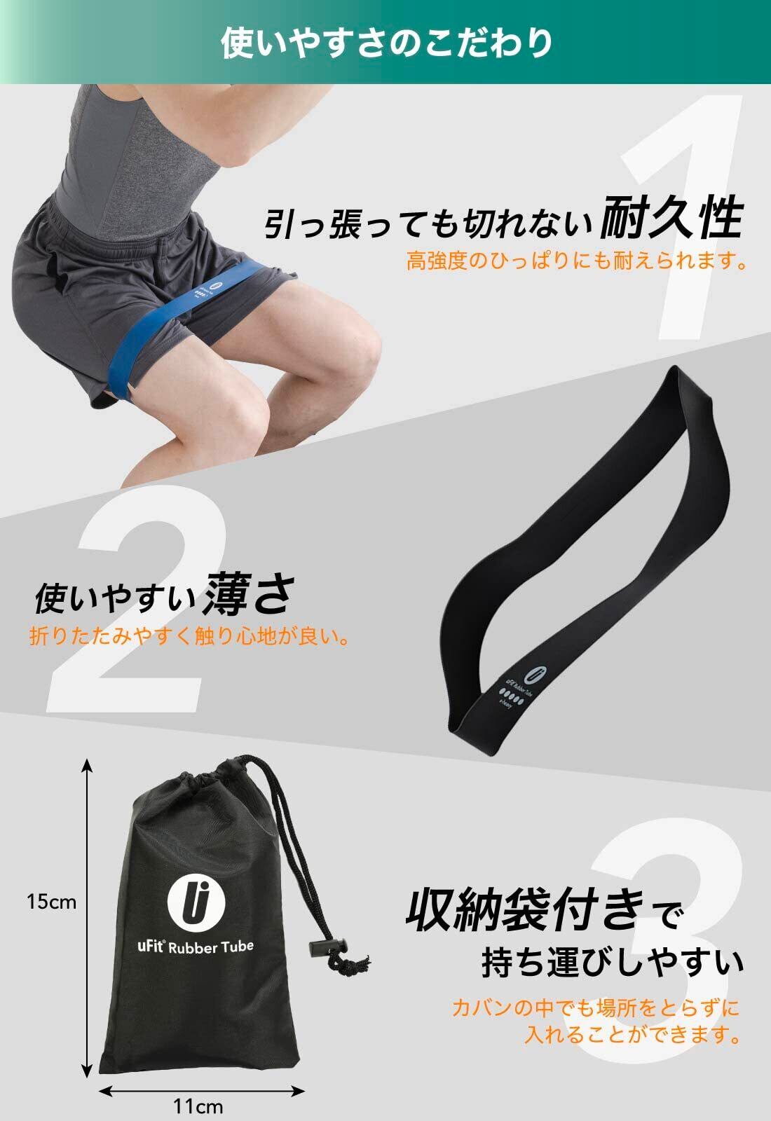uFit Rubber Tube ゴムチューブ 筋トレ 強度別5本セット プロアスリート 水谷隼 愛用 天然ゴム 臭くない 収納袋 使い方動画 トレーニング フィットネス エクササイズ (1)