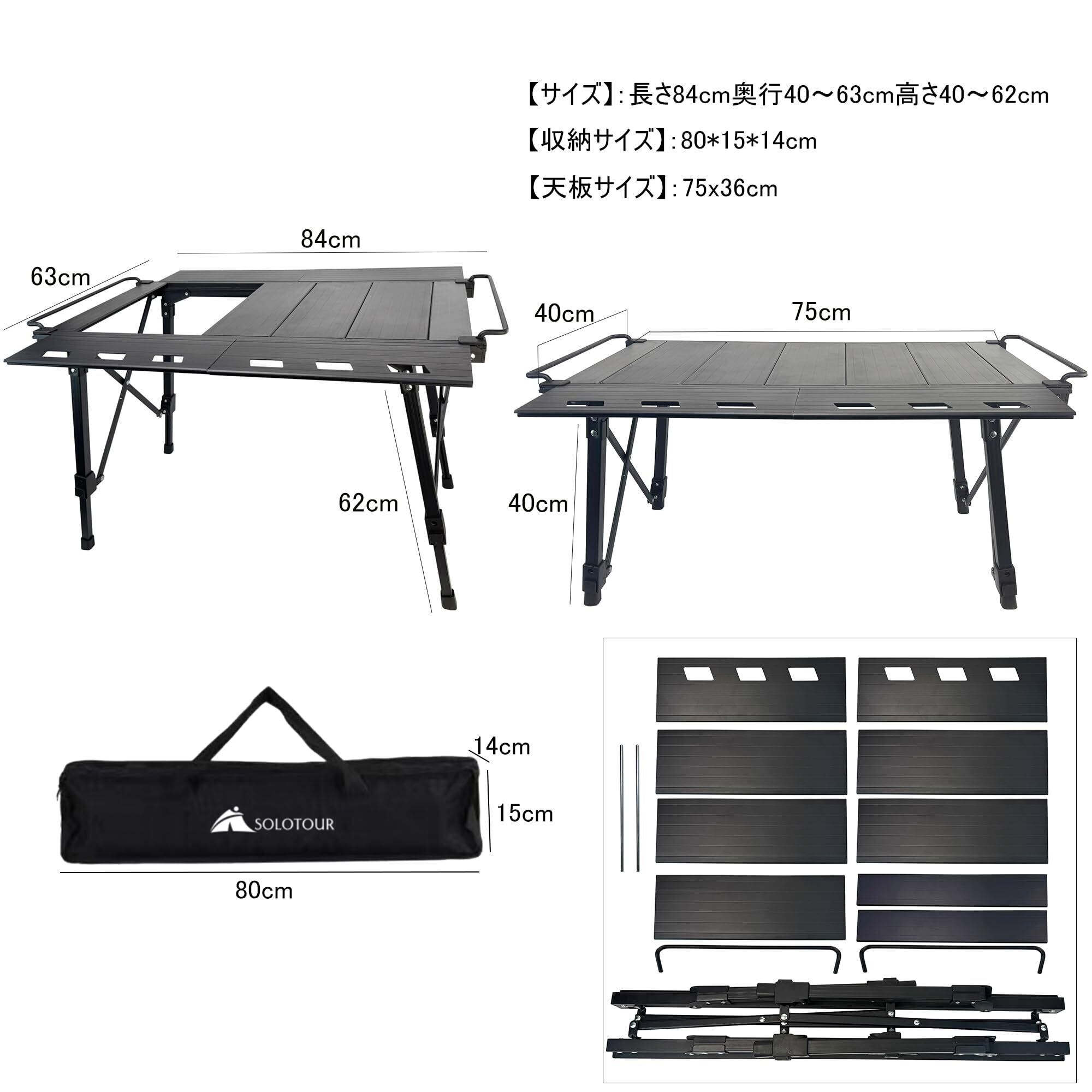 Solotour IGTテーブル アウトドア テーブル キャンプ 折り畳み アルミ 調節可能 軽量 頑丈 30㎏荷重 便利 バーベキュー ハイキング コンパクト 収納袋付き
