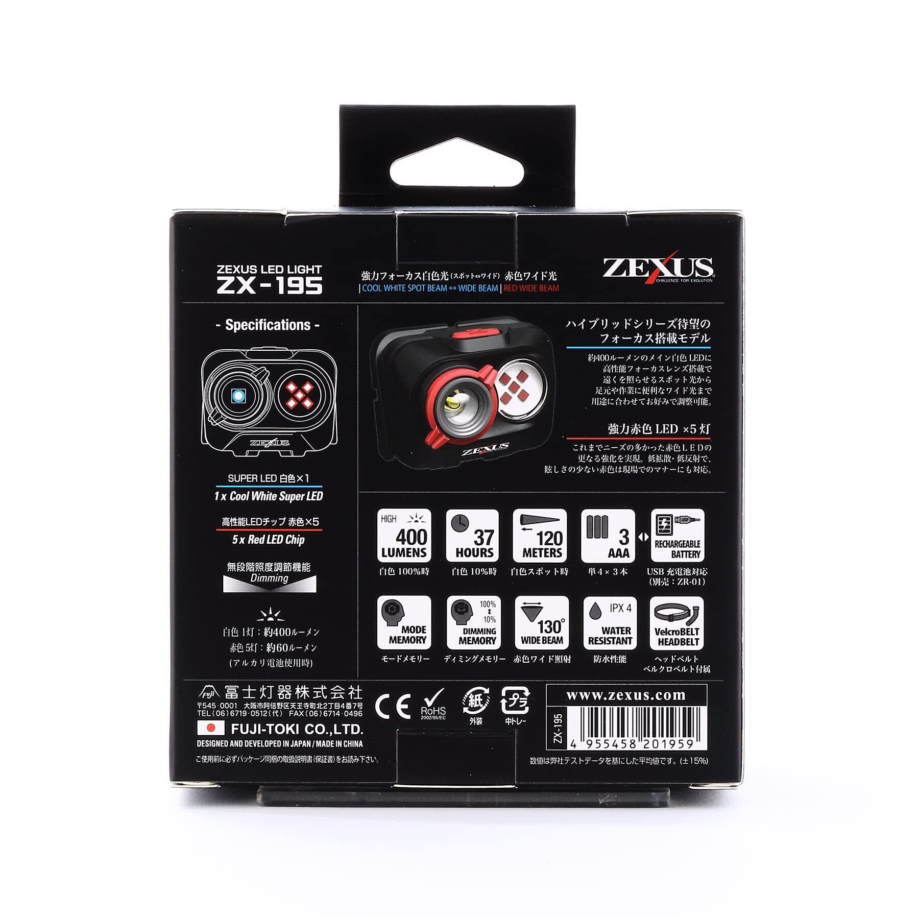冨士灯器 ZEXUS(ゼクサス) LEDライト ZX-195 [最大400ルーメン メインLED点灯時間:最大37時間 白/赤色]