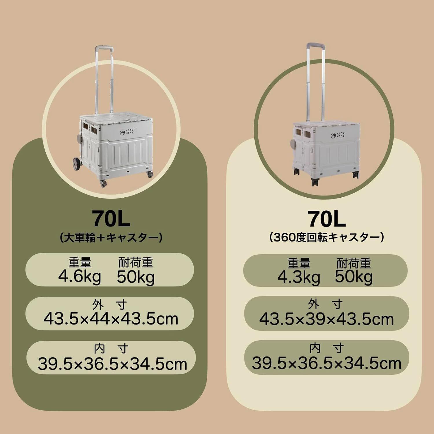 【大容量のキャリーカート】〇本体容量:70リットル 〇耐荷重:50kg 大容量のキャリーカート。スーパー帰りの水の持ち運びや、アウトドア・ピクニックなど…様々な場面で活躍!