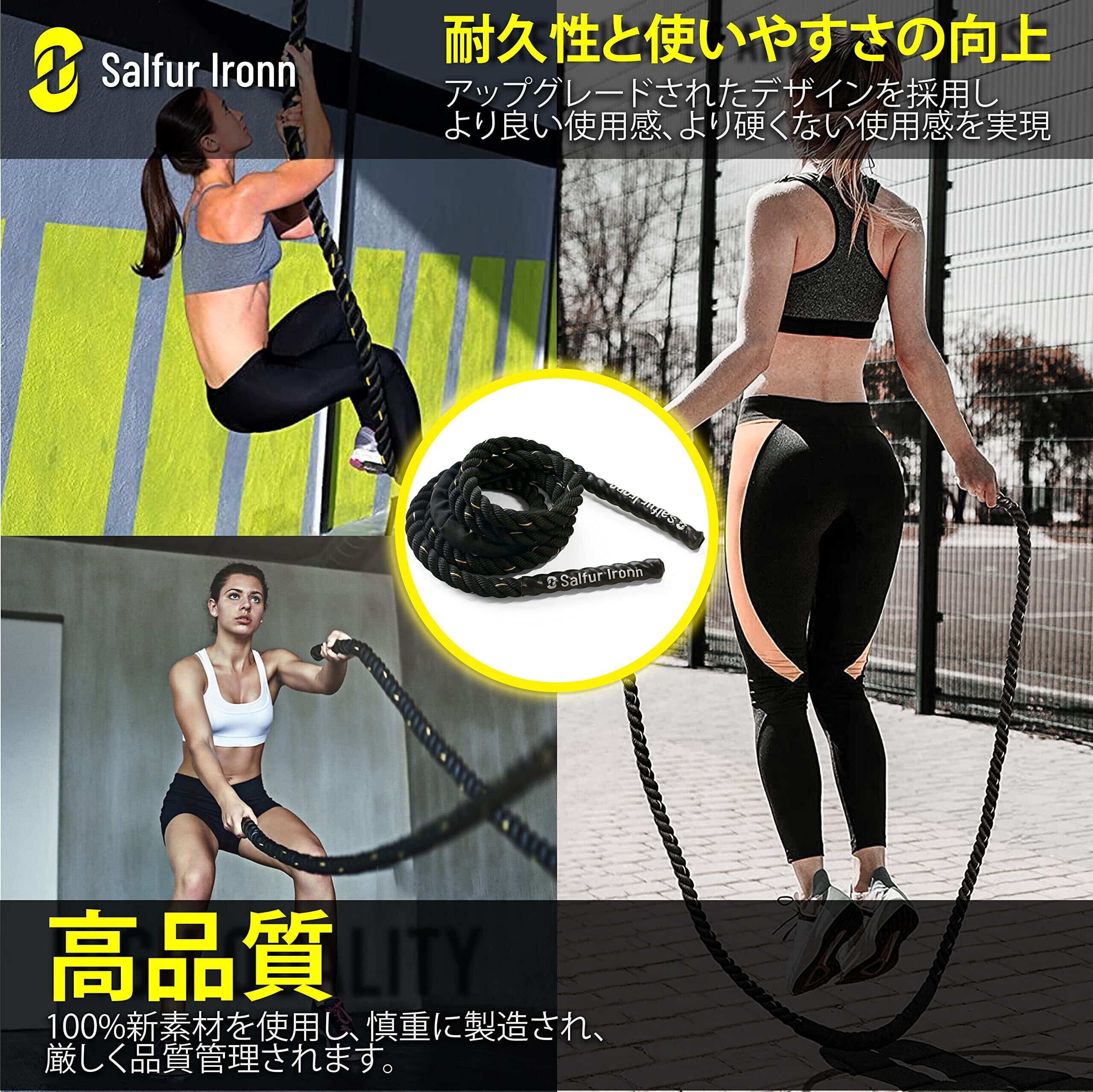 全ての筋肉群を鍛えよう! 重いバトルロープは、思っているよりも短時間でコア、肩、背中の筋肉を鍛えるのに効果的です。この縄跳びは、脚、腕、安定筋を強化しながらバランスを改善します。フィットネス用の縄跳びは、上半身の筋力とコーディネーションを高める素晴らしいツールです。ワークアウト用の縄跳びは、ローテーターカフ(肩関節の筋群)をサポートし、柔軟性も向上させます。太い縄でのトレーニングは、持久力も向上させます!