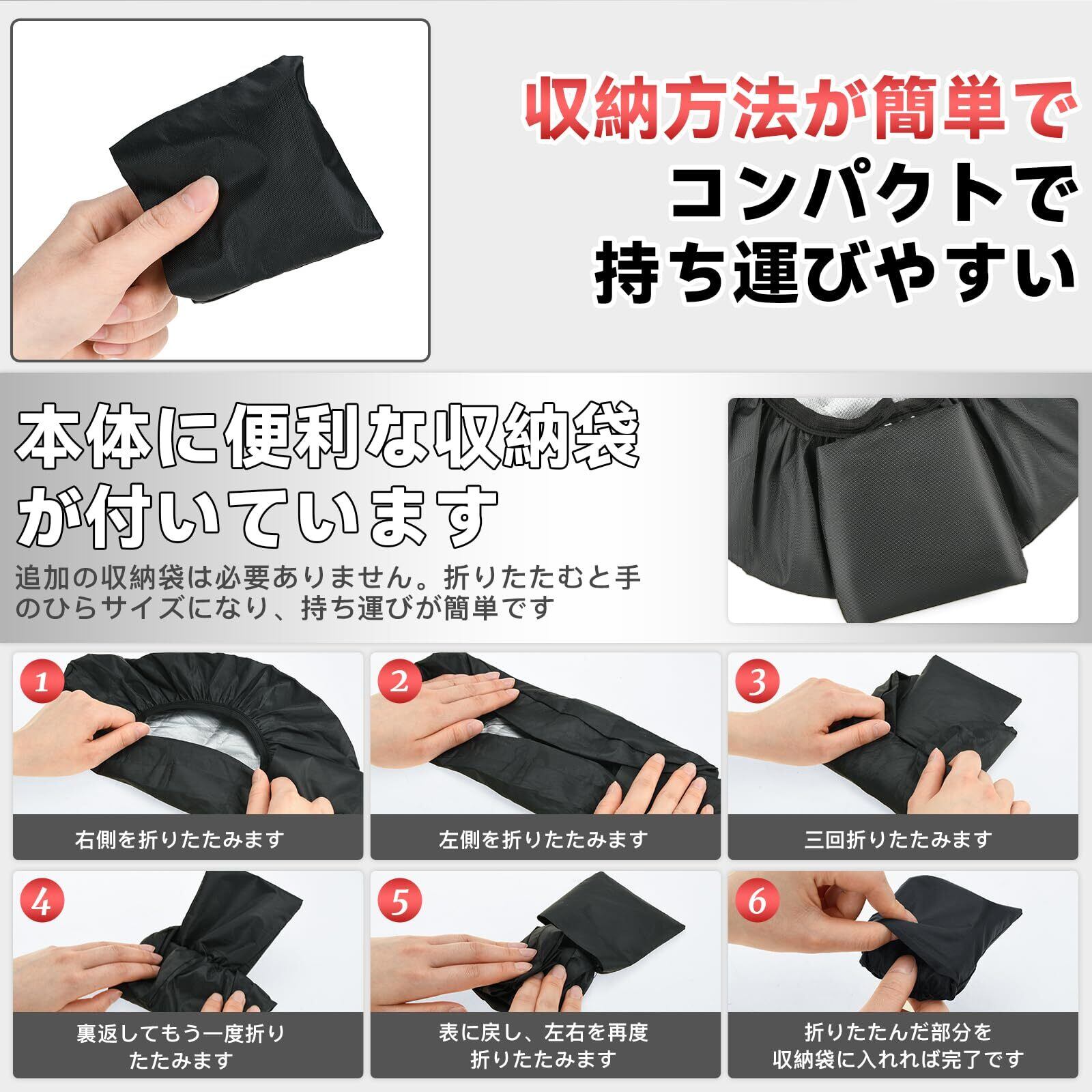 【コンパクトで持ち運びやすい】自転車シートカバーは折りたたむと手のひらサイズになり、持ち運びも非常に便利です。収納袋が本体に付属しているため、追加の収納袋は不要。簡単に収納でき、いつでも手軽に持ち運べます