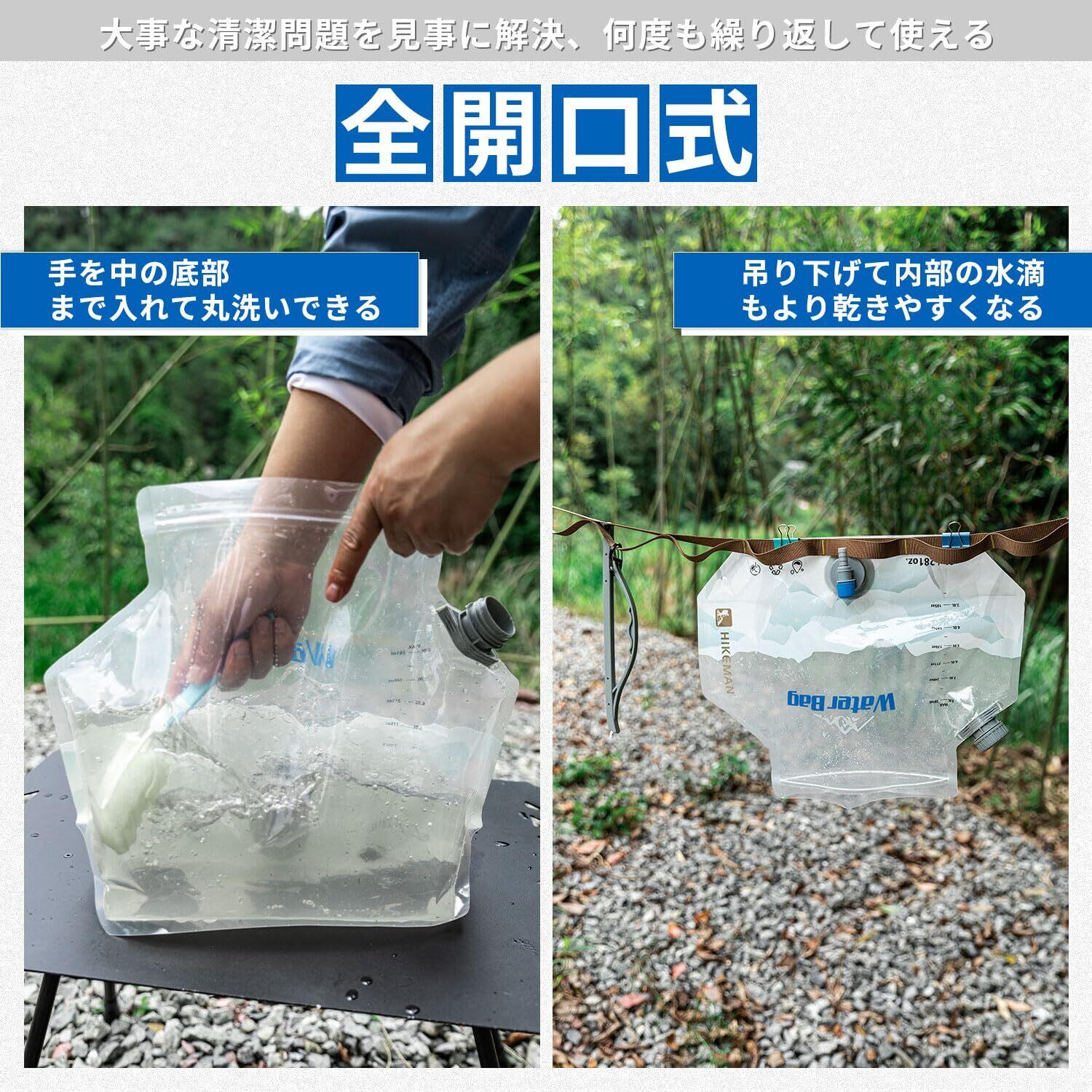 折り畳み式&多用途:8Lの大容量、2点セットで、ソロキャンプはもちろん、ファミリーの時でも必要な水を一回で入れることができます。コンパクトに折り畳めるし、持ち運びやすい。キャンプは勿論、断水や地震など災害時このウォーターバッグ一つ備えると水確保問題が解決できます。
