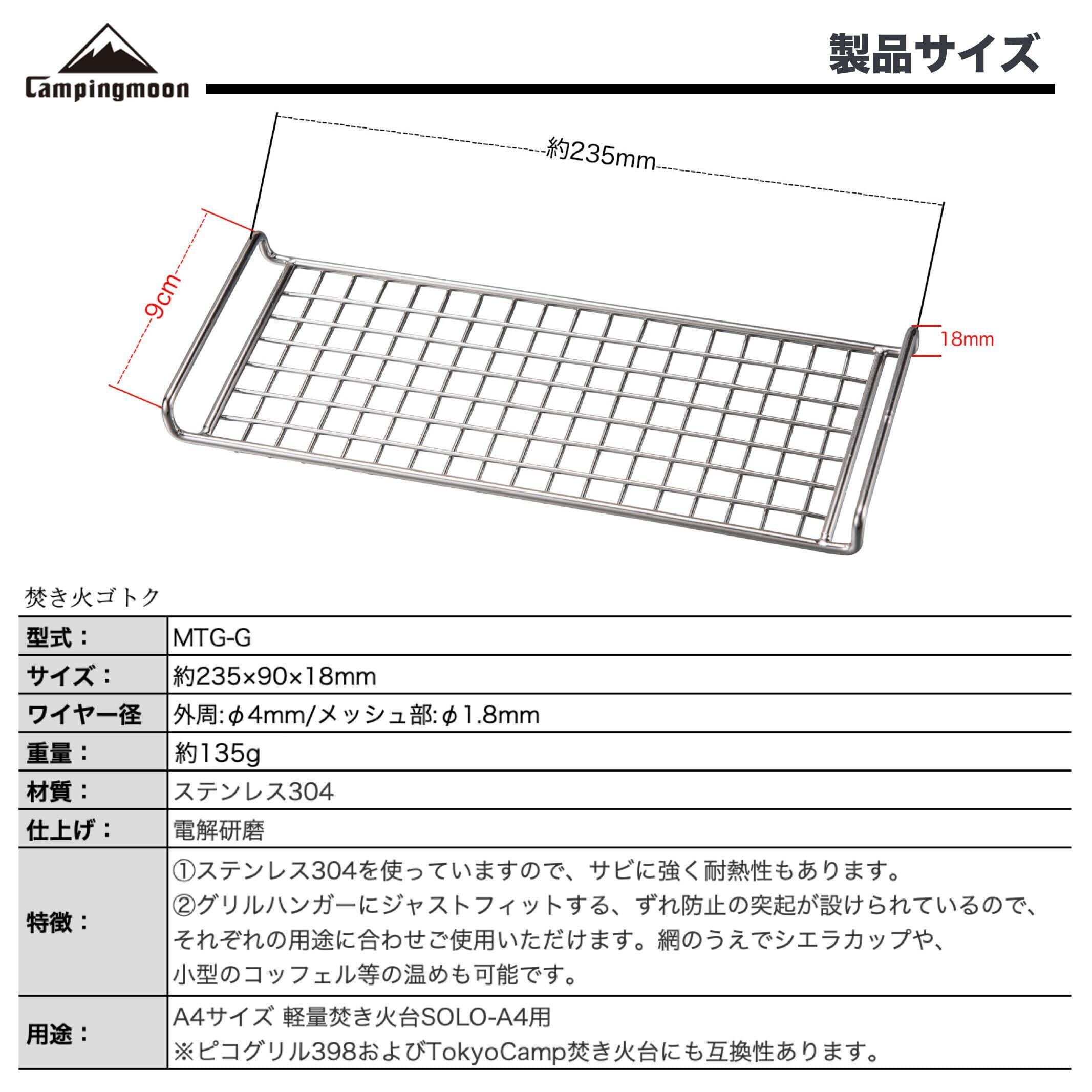 キャンピングムーン(CAMPING MOON) A4サイズ 軽量焚き火グリル用 ゴトク ステンレス ロストル MTG-G