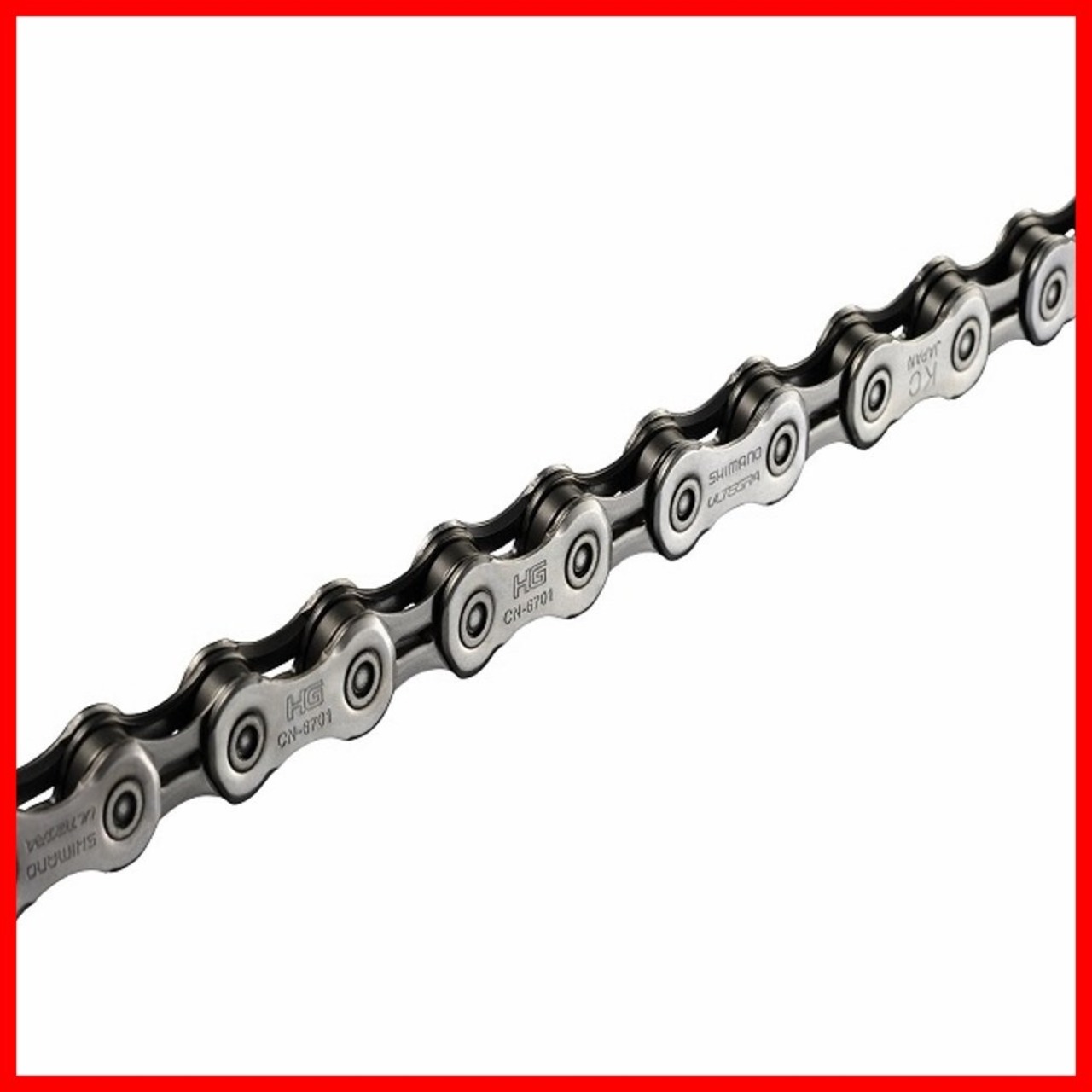 シマノ10スピード用スーパーナローHGチェーン。118リンク。MTB10速、ロード/MTB用9速以下のコンポーネントとの互換性はありません。