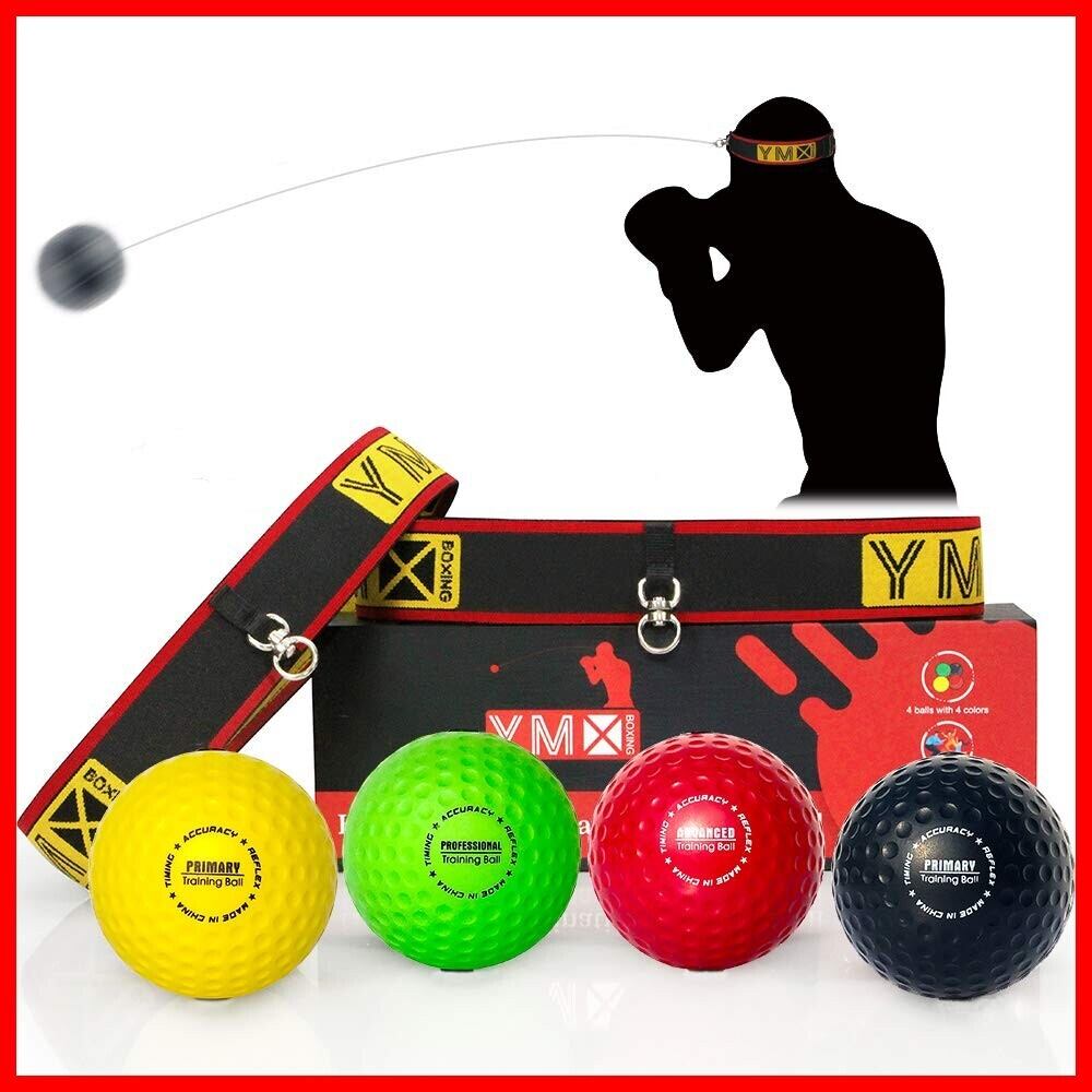 【特価商品】YMX ボクシング アルティメットリフレックスボールセット - リアクトリフレックスボール4個と調節可能なヘッドバンド2個。ボクシング、MMA、Krav Megaの反射、タイミング、精度、フォーカス、手と目の協調トレーニングに最適 | カウカウ物販