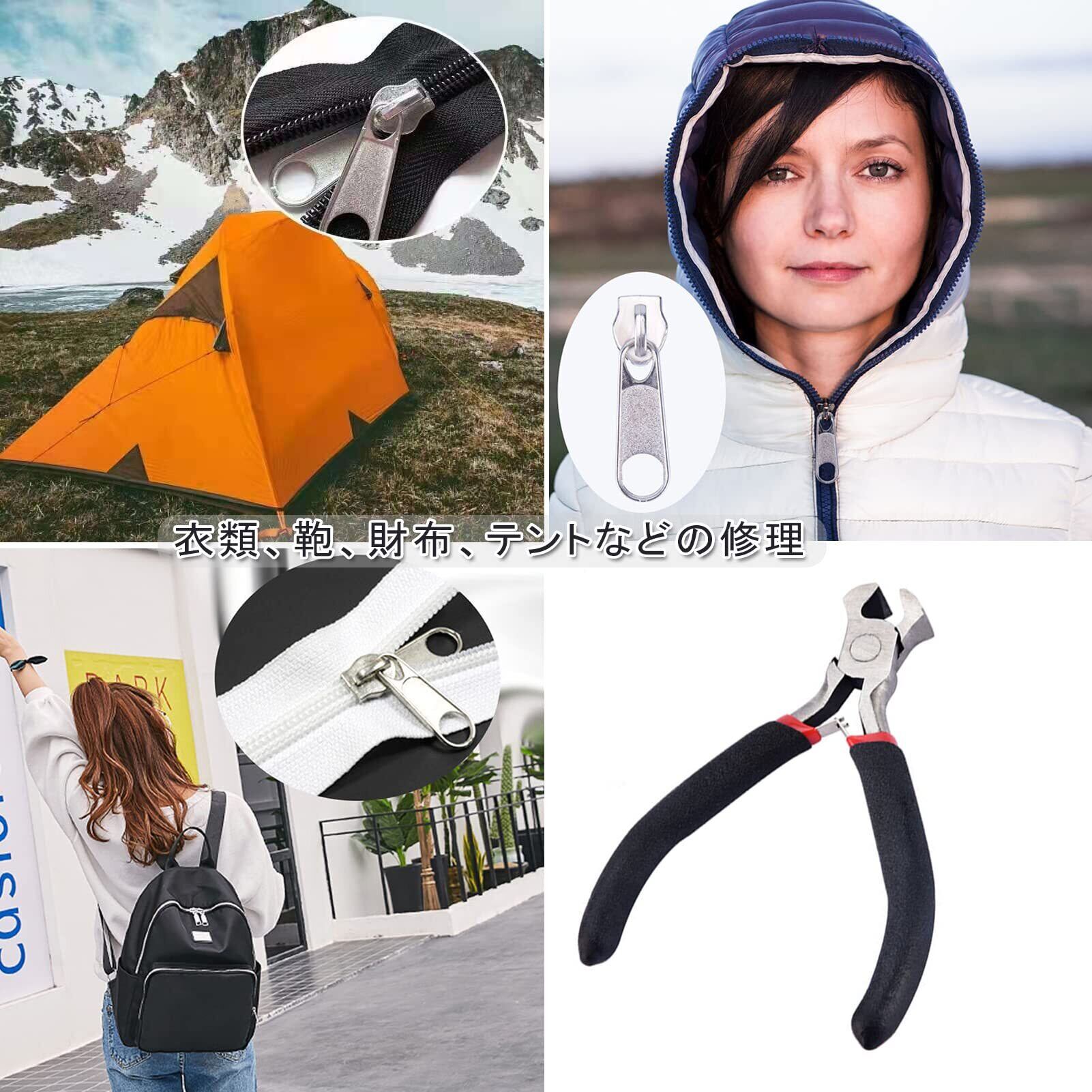 【修理用ペンチ1個付き】ジッパー取り付ける1個ペンチが付いています。10.5x7 cmのコンパクトなサイズで 、ファスナーストッパーを取り付けること、またはジッパーのとい付けることなどにも使いやすいです
