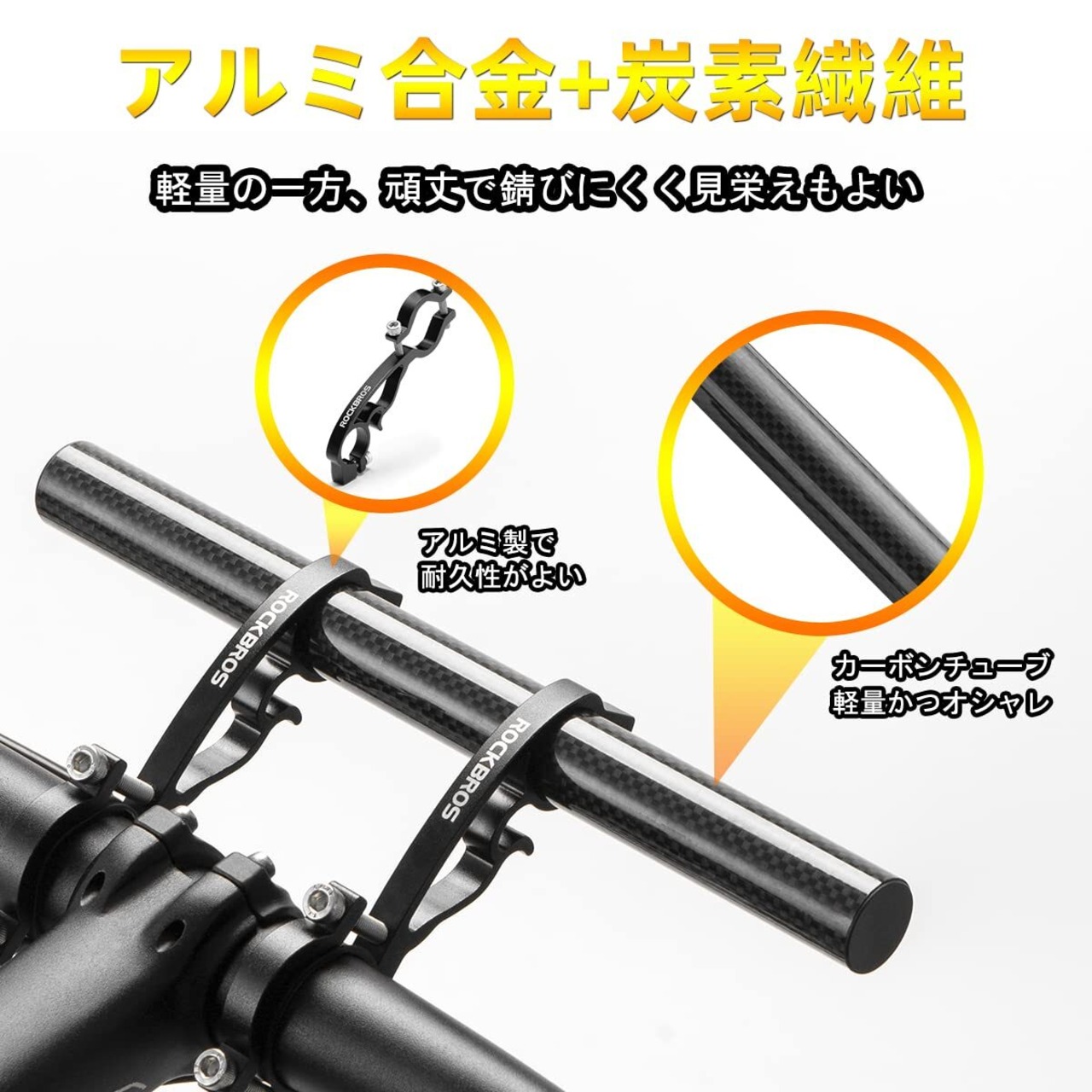 ROCKBROS 自転車 ハンドルバー 延長ブラケット エクステンションバー カーボン 軽量 炭素繊維 拡張 自転車ホルダー エクステンションマウント 長 25cm スマホ ライト サイコン マルチホルダー 取付場所を増やすフレーム 六角レンチ付き 対応ハンドル径φ20-32mm ブラック