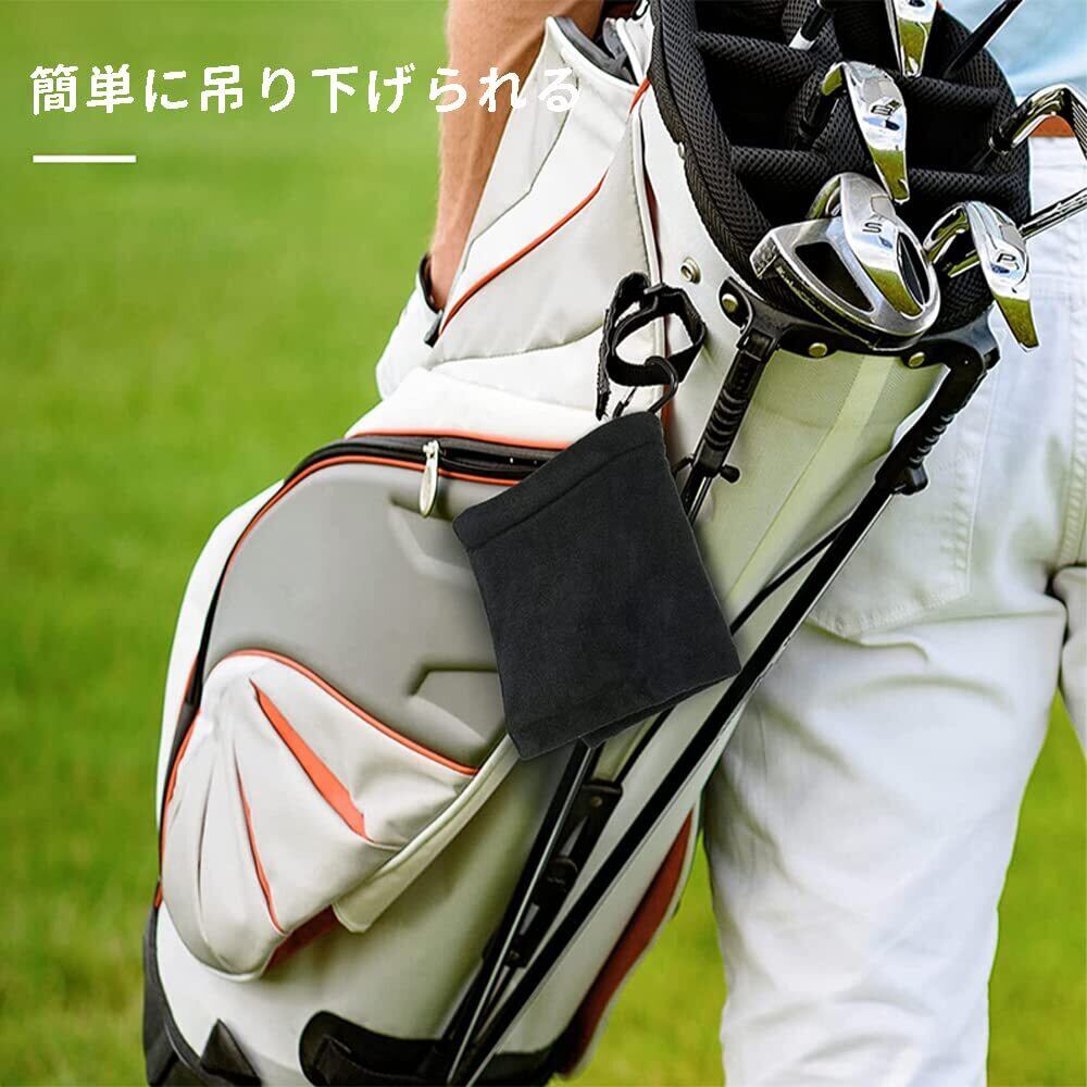 MEDUSHASHA ゴルフ タオル ゴルフボールクリーナー ゴルフ用清潔具 カラビナと 便利 防水 キーホルダーバックル 14*14cm(ブラック) 2個入り ゴルフボールクリーニングタオル