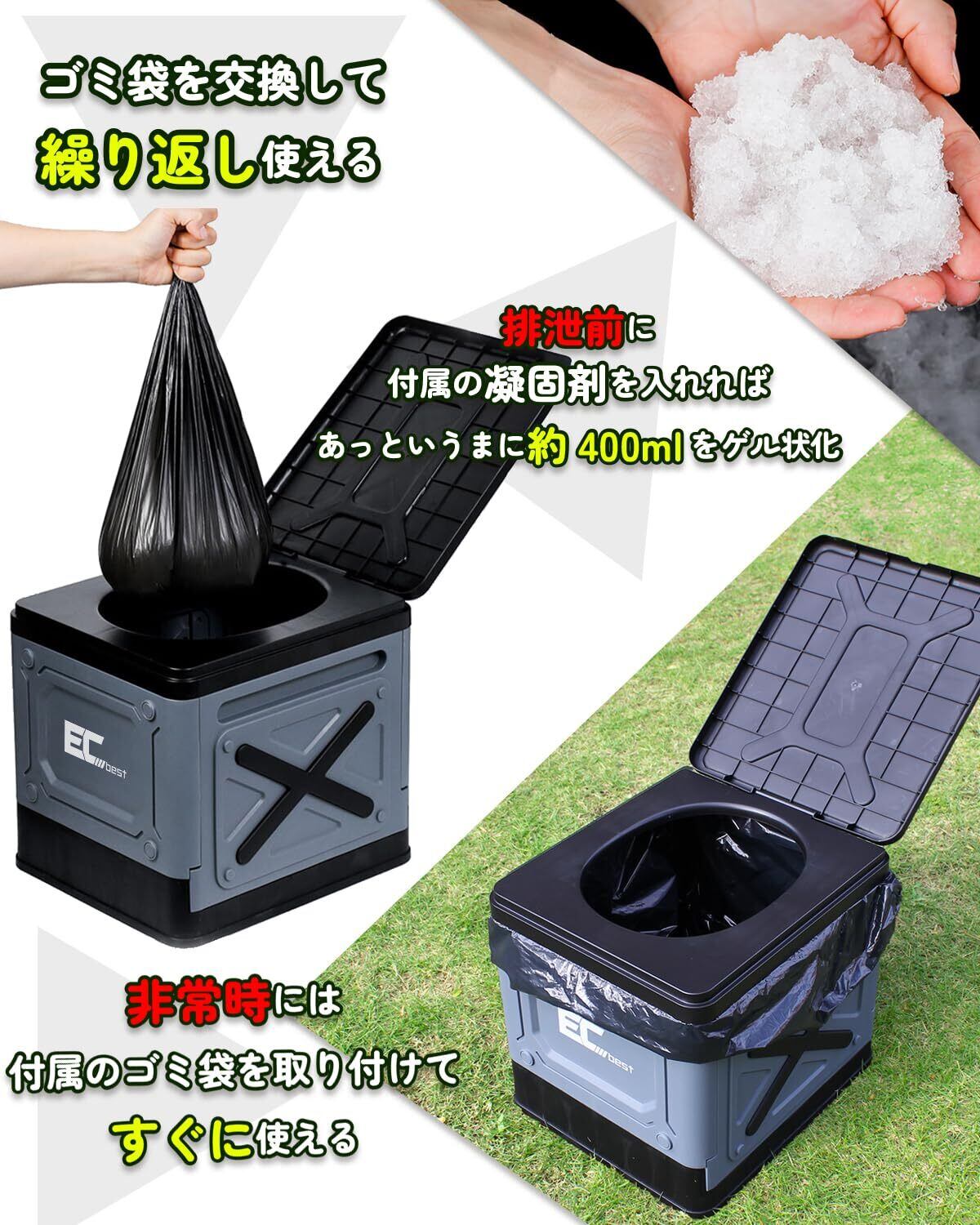 ECbest 簡易トイレ 非常用トイレ 防災グッズ 携帯トイレ 防災士推奨 防災からアウトドアまで ポータブルトイレ 凝固剤・廃棄袋12セット付き 折り畳みタイプ 耐荷重約150㎏