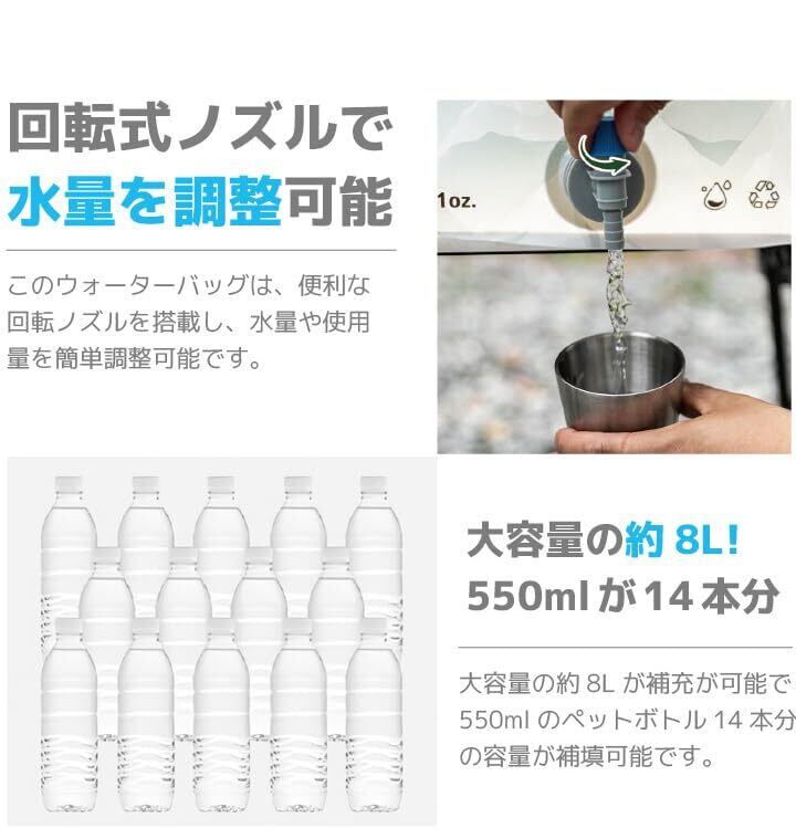 ウォータージャグ 8L キャンプ ウォータータンク ウォーターバッグ アウトドア用ポリタンク 水タンク 給水袋 洗浄便利 全開口式 回転式コック 折りたたみ 3層構造 避難防災グッズ 1個入り
