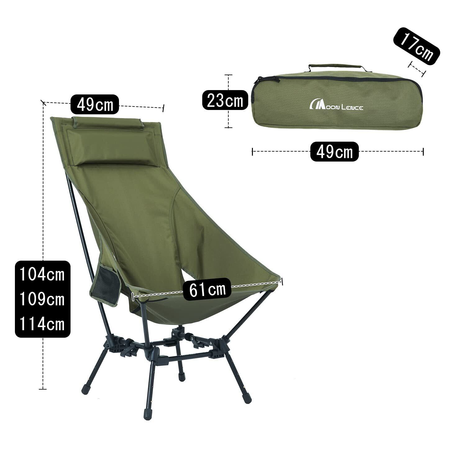 MOON LENCE アウトドアチェア ハイバック 四段階高さ調節 キャンプ 椅子 あぐらチェア グランドチェア 折りたたみ 軽量 コンパクト 枕付き 耐荷重180kg