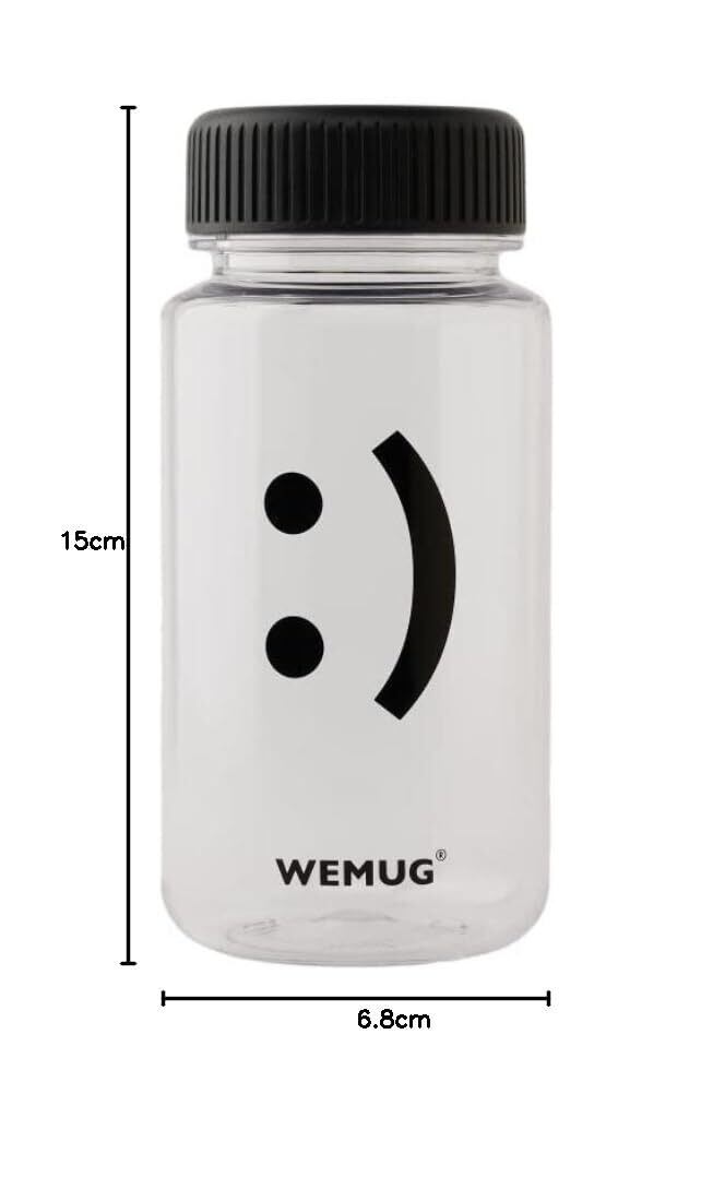 WEMUG ミニ ウォーターボトル 350ml (水漏れしない 高密閉ボトル) パッキンレス 水筒 mini smile (クリア)