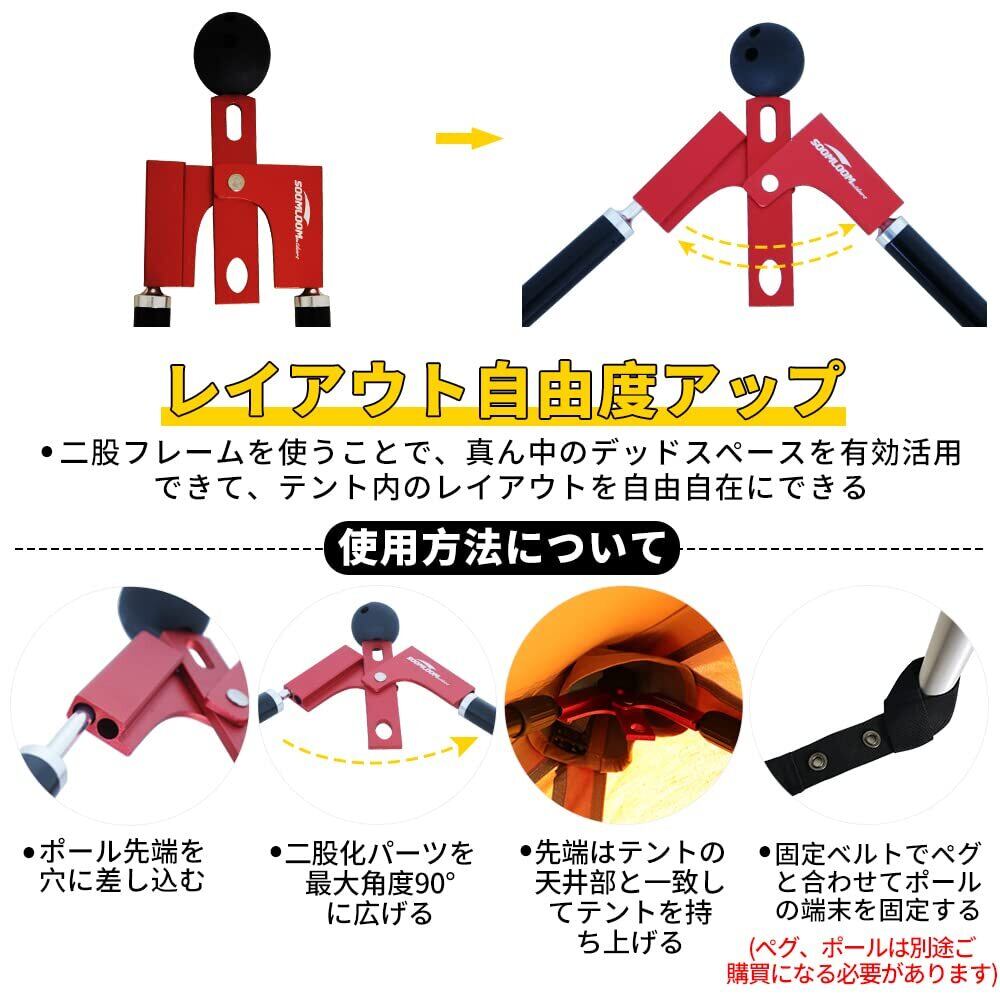 Soomloom二股化パーツ90°ポールジョイント 二又化フレームアジャスター 空間拡大 固定ベルト付き ランタン穴 ワンポールテント 収納バッグ付き