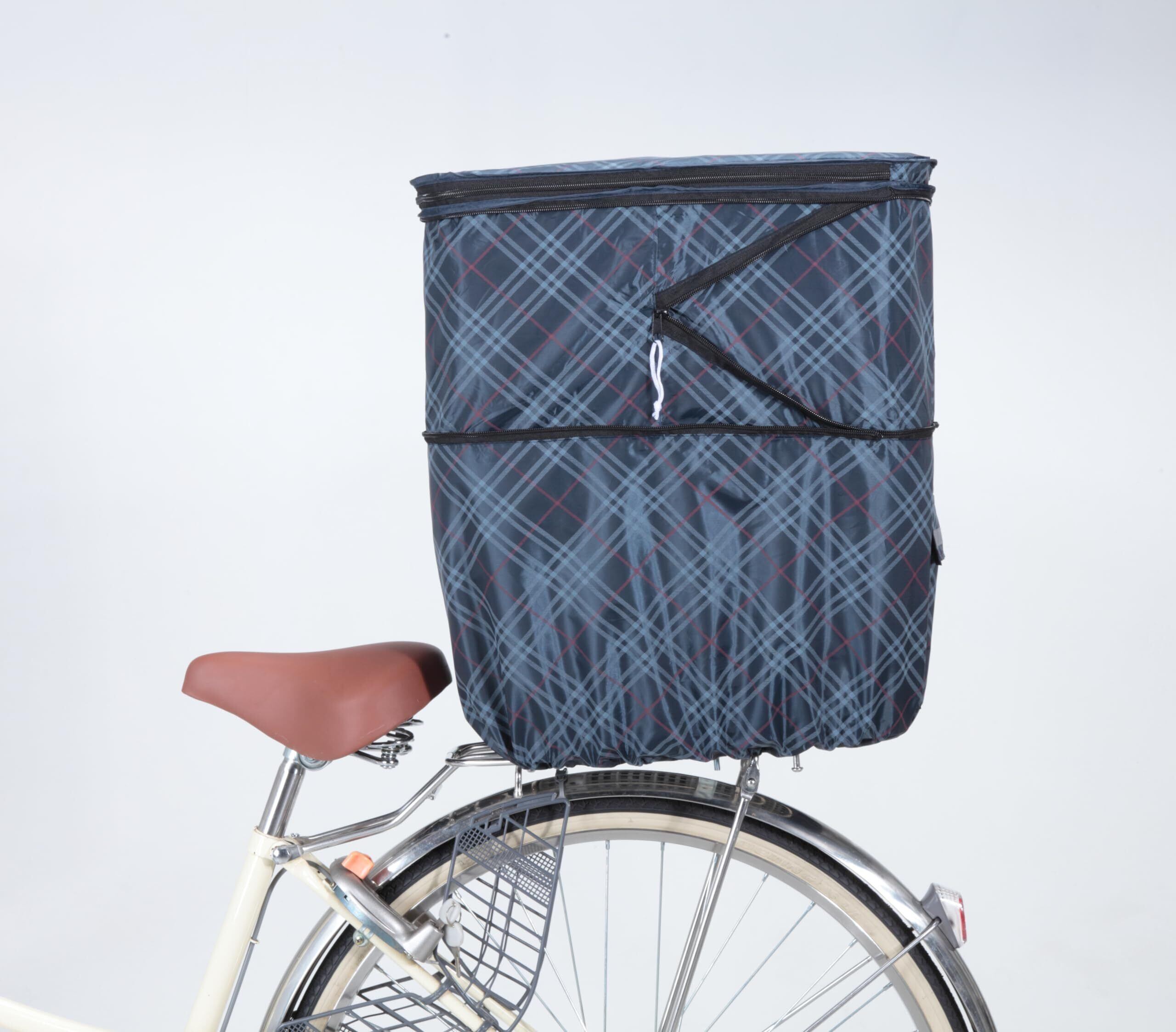 幅340X長さ430X高さ300~450mm 2段式収納で、荷物が無い時はスッキリ!多い時はたっぷり収納できます。 前後開きファスナー式で、前後どちらからでも開閉可能。 背面ゴム入りで小さなカゴにもフィットします。