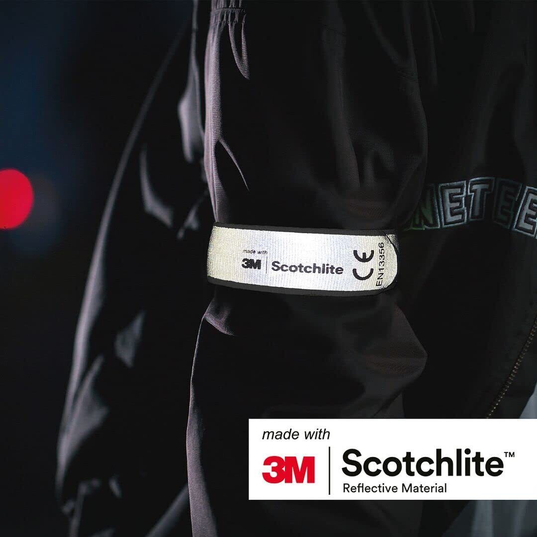 米国3M社製のスコッチライト反射素材使用。反射率500cd / luxで 夜間最大180メートル離れた車から視認可能。