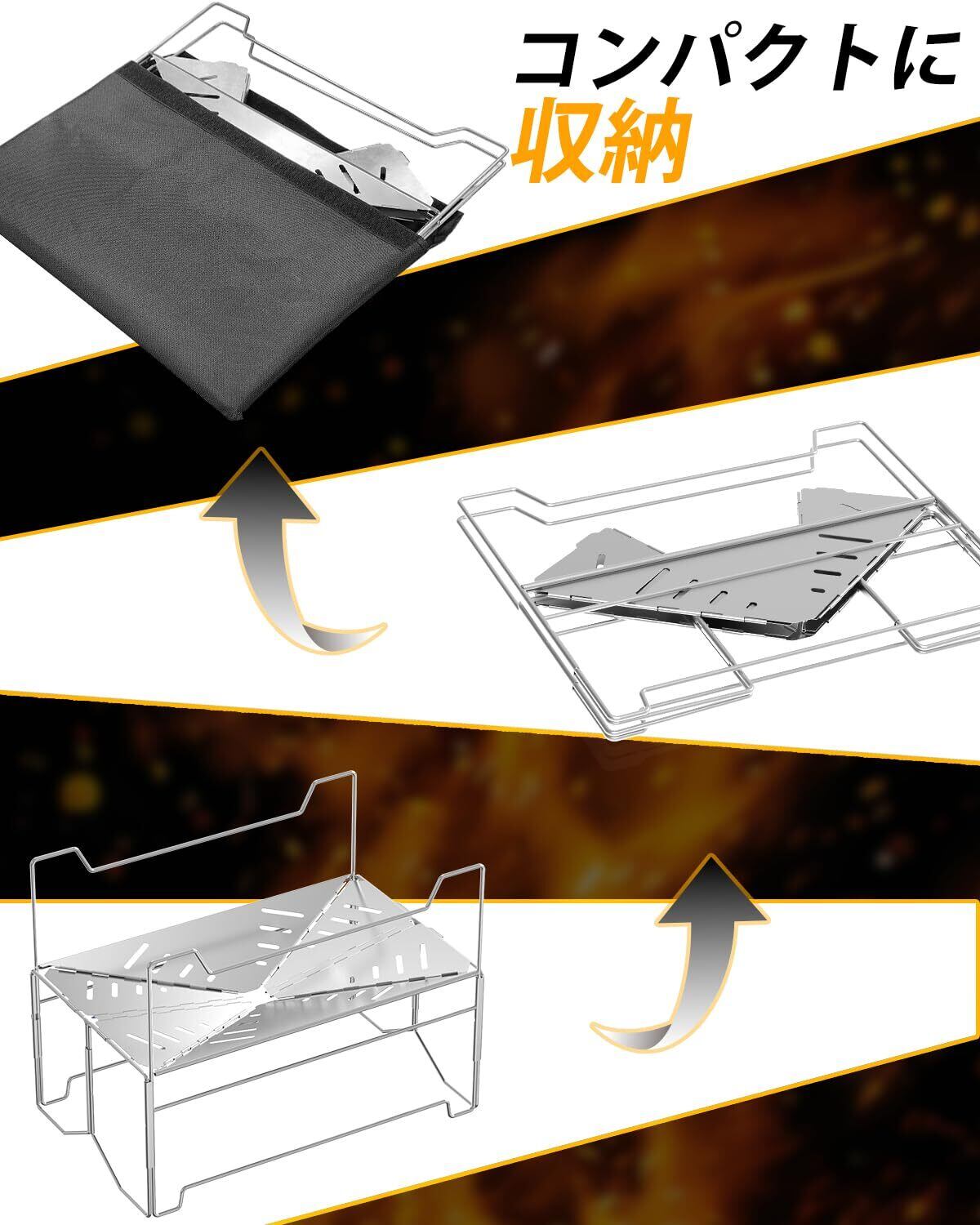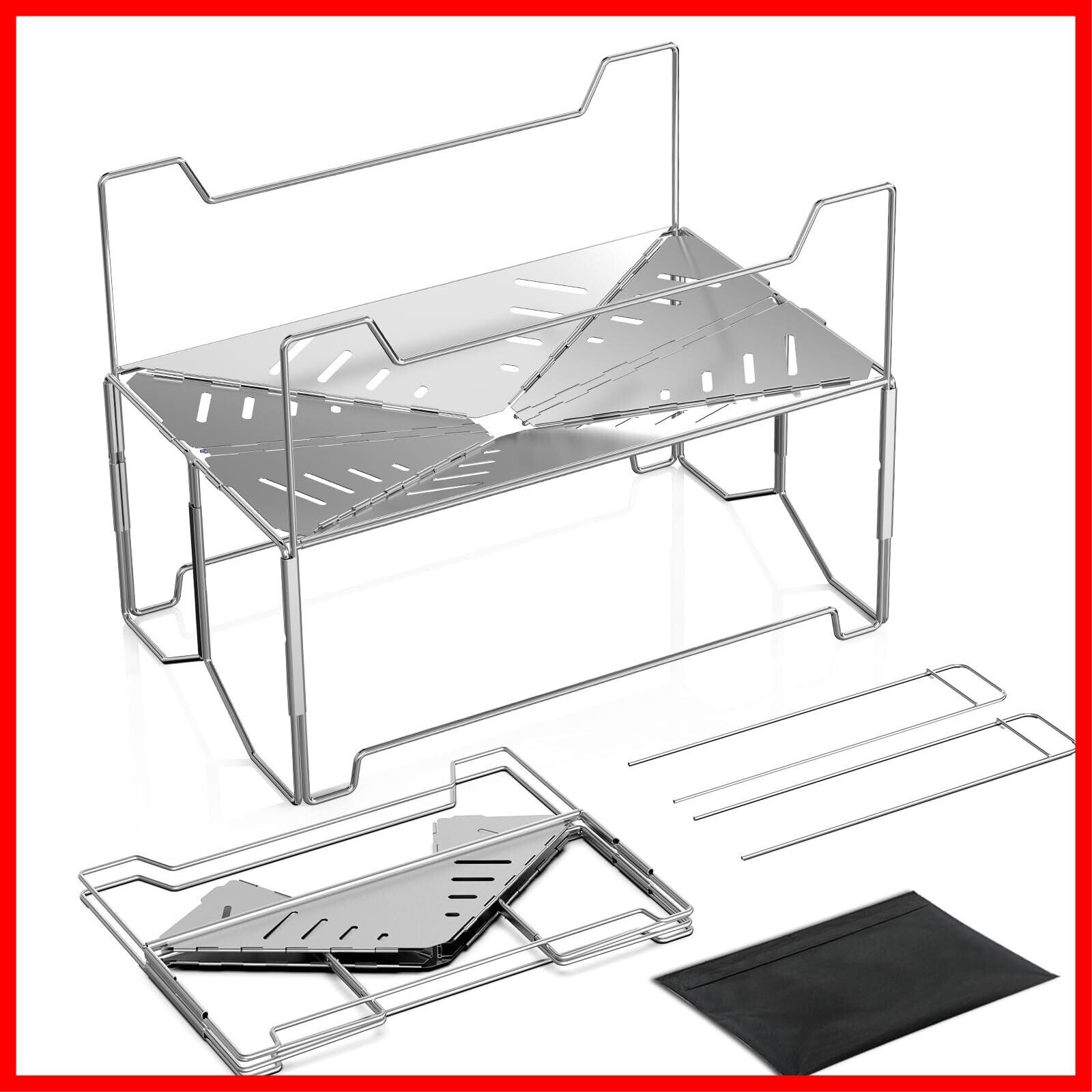 【新春セール】Usteetic 焚き火台 焚火台 3秒展開収納 折り畳み 折りたたみ式 ソロ最適 軽量 コンパクト A4サイズ キャンプ 焚火 ソロ ファミリー 初心者 ステンレス製 五徳付き 収納ケース付き (焚き火台) | カウカウ物販