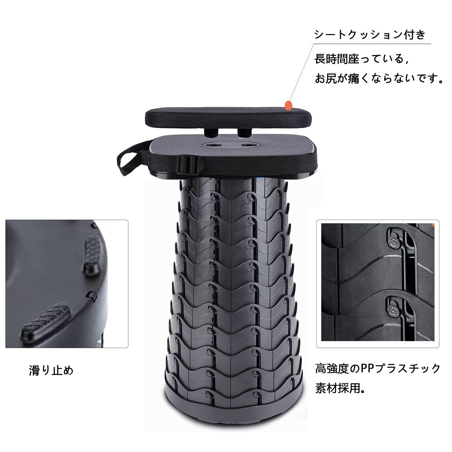 【在庫処分】BIKYO 折りたたみ椅子 アウトドアチェア 伸縮式 キャンプ椅子 折り畳み式 キャンプスツール 軽量 コンパクト 持ち運び便利 耐荷重220KG 一秒開閉でき 高さ調整可能 6.5-45CM 滑り止め 【意匠登録】シートクッション 収納バッグ付き (ブラック+角型 + シートクッション) | カウカウ物販