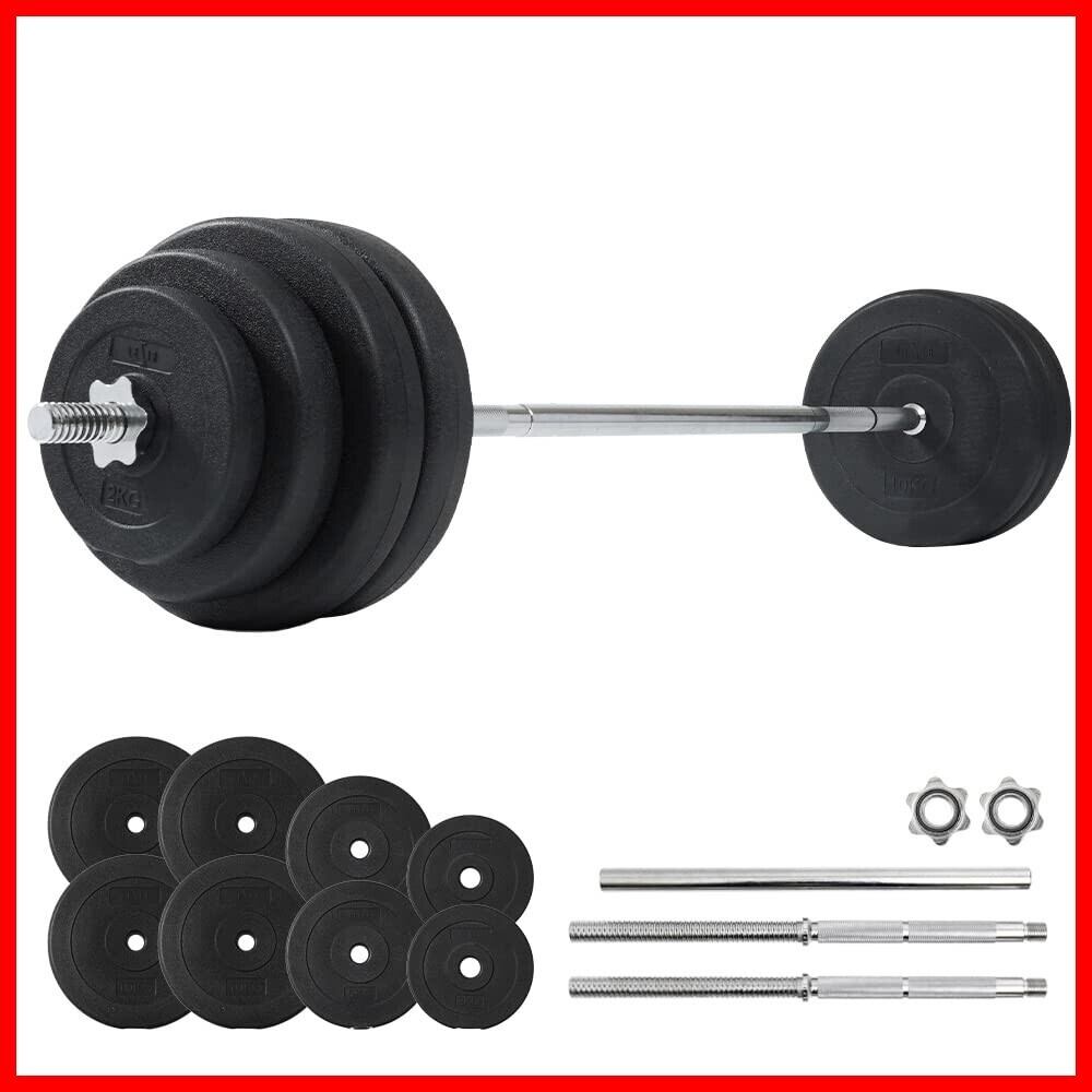 【LESIRバーベル40kg setの内容】バーベル全長=160cm。分解式シャフト(3分割可能、シャフト直径約28mm)、10kgプレート×4枚、5kgプレート×2枚、2kgプレート×2枚、スクリュー式カラー×2個。※プレート穴の直径は約29mmです。