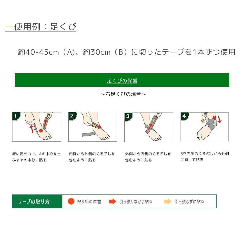 ●使用方法:(1)貼る部位の汗や皮脂をふき取ります。 (2)貼る部位に応じた長さにテープを切ります。 (3)テープをはく離紙からゆっくりはがし、貼っていきます。使用する時は必ず、皮膚に直接テープを貼ってください。 ※詳しくは同梱の貼り方説明書をご覧ください。なお、テープをはがすときは、皮膚を押さえるようにしながらゆっくりはがしてください。