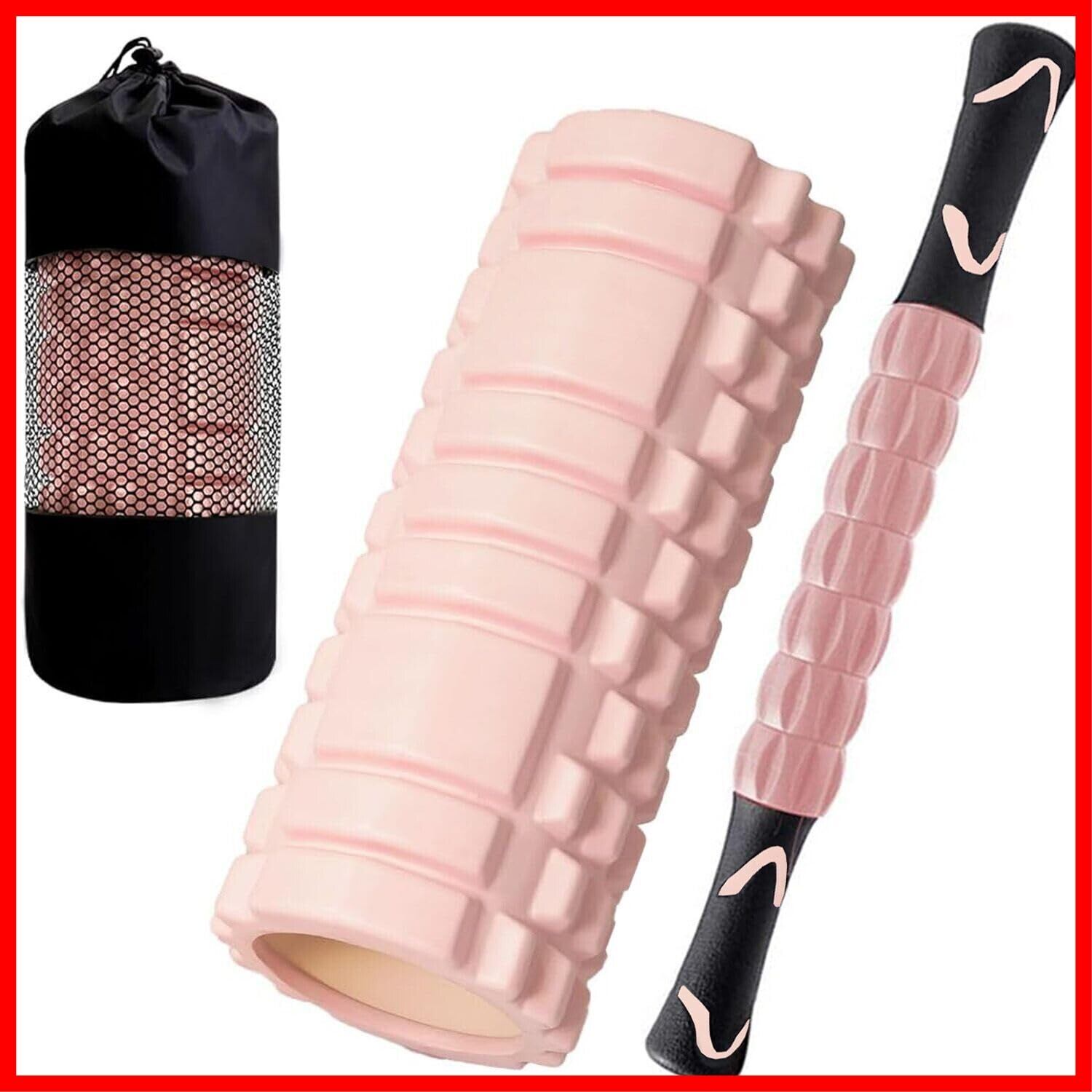【フォームローラー セット】ストレッチローラーx1、マッサージスティックx1、収納袋x1を含めます。ヨガ、ジム、旅行先など様々な場所で使えます。どこでも首からつま先まで全身の筋肉をしっかり揉み解せます!