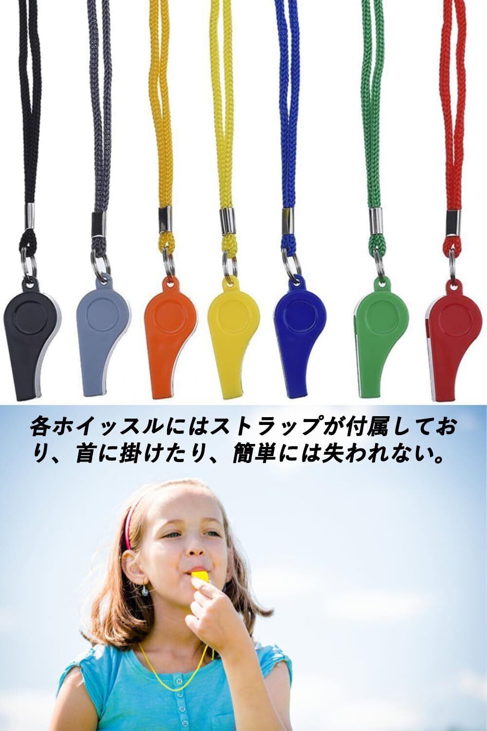 プラスチックホイッスル7個セット。カラー:ブラック、グレー、レッド、オレンジ、イエロー、グリーン、ブルー。