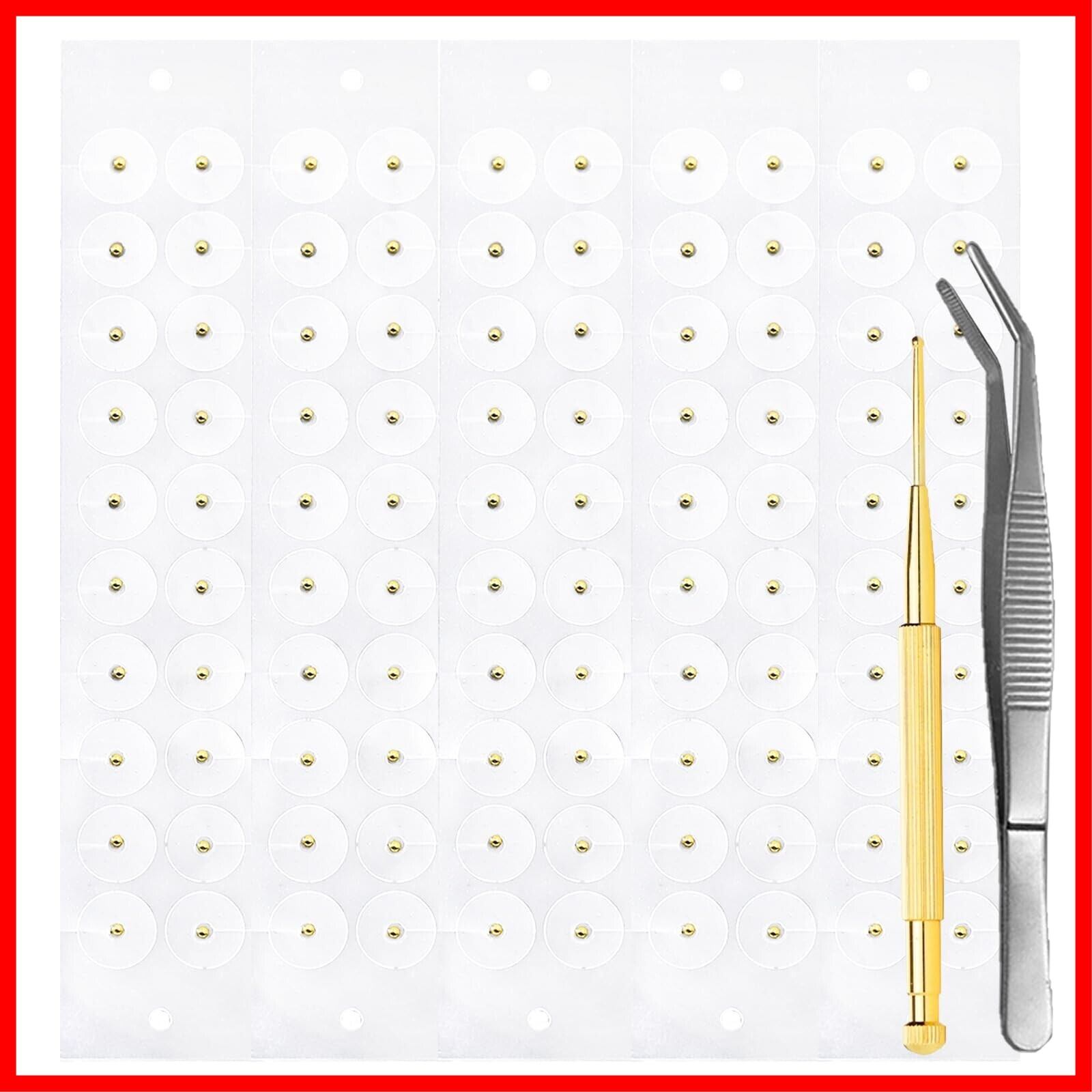 耳つぼジュエリー 100粒 耳ツボシール ステンレス製 耳つぼシール 金粒 銀粒 透明 耳ツボジュエリー シール(付属のピンセットやツボ確認棒 説明書)