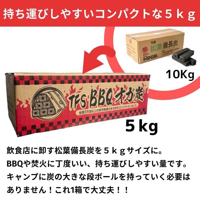 【TFS】オガ炭 BBQ用【5kg】長時間燃焼 コンパクトサイズ 煙無し キャンプ 持ち運び便利 (5kg) 火が付きにくいです(すいません)