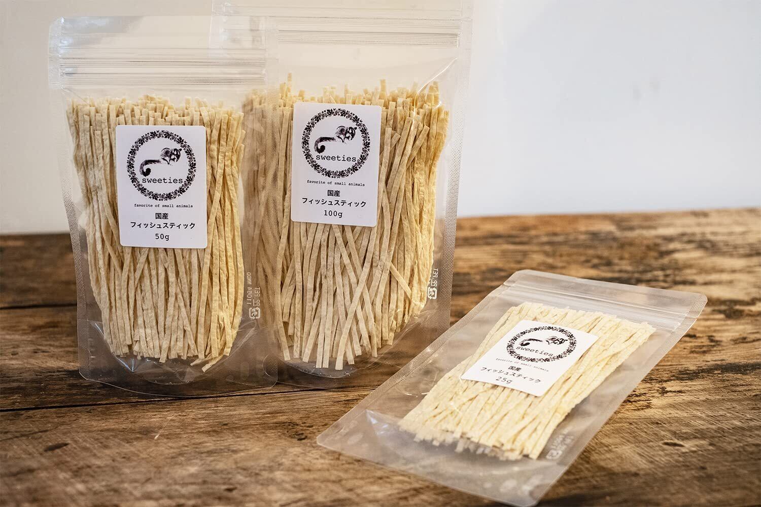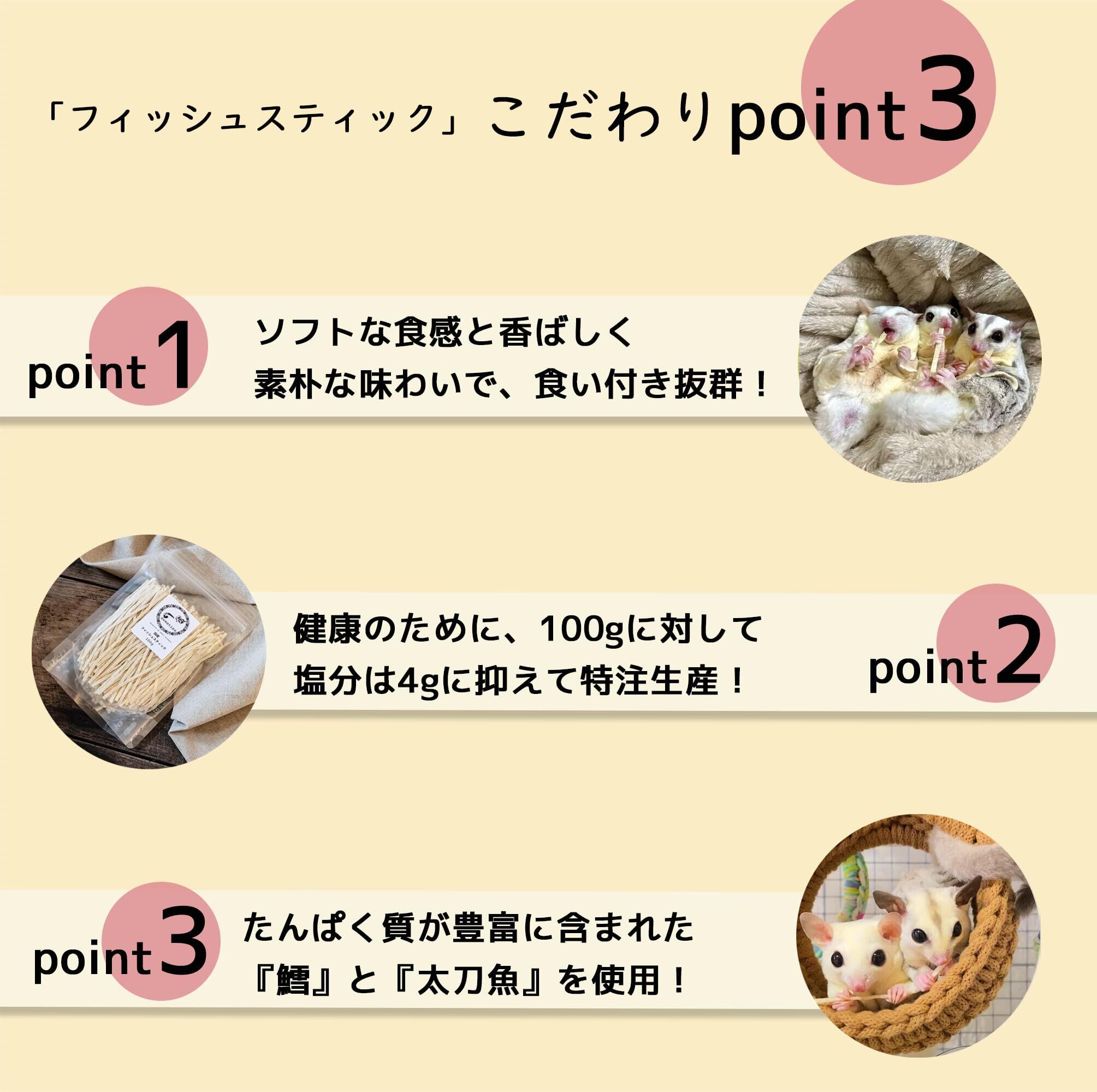 【国産】 小動物おやつ フィッシュスティック 高たんぱく & 食い付き ハムスター フクロモモンガ 100g