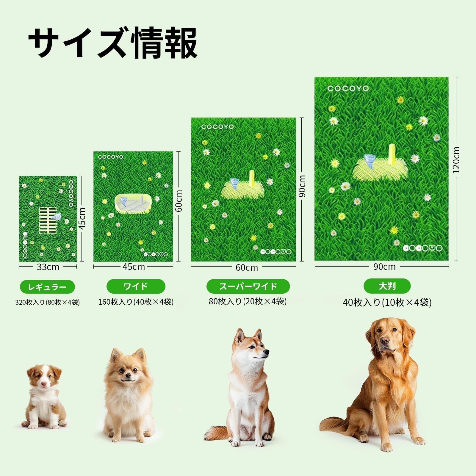 【芝生柄付き&トレーニング簡単】COCOYO青青芝生ペットシーツは芝生をイメージしたデザインで、愛犬が自然を感じながらトイレを使うことができます。視覚的に愛犬の興味を引きつける3種類の3Dデザインを搭載し、トイレトレーニングを簡単に進めることができます。絵柄については商品詳細ページをご参照ください。