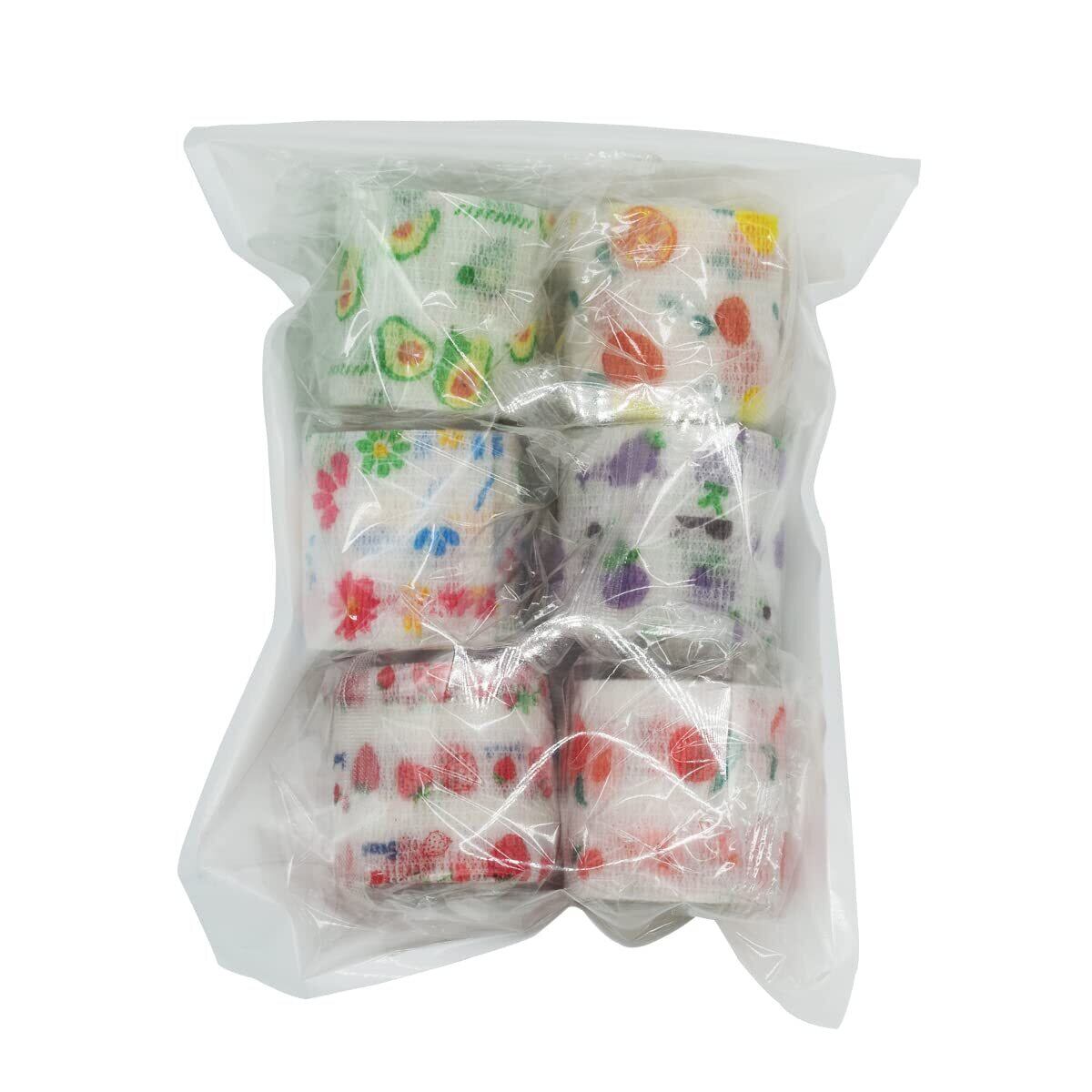 Edostree ペットフレックス 粘着包帯 自着性伸縮包帯 弾力包帯 バンテージ ペット 犬 猫 伸縮 防水 不織布 6点セット 5cmx 4.5m DSGBD-04