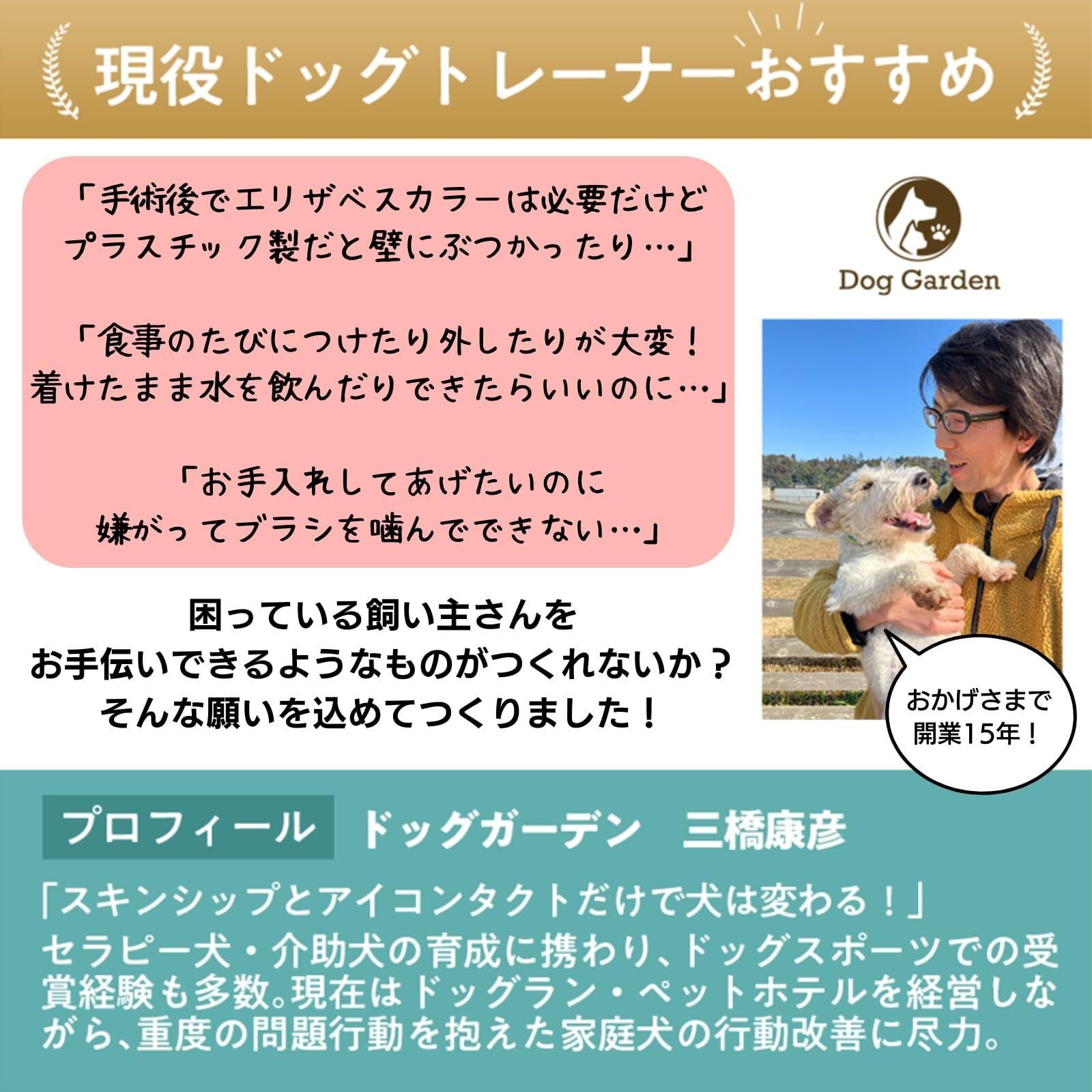 商品の推奨用途 去勢手術・避妊手術後の傷なめ防止、ブラッシングなどのトリミング補助具