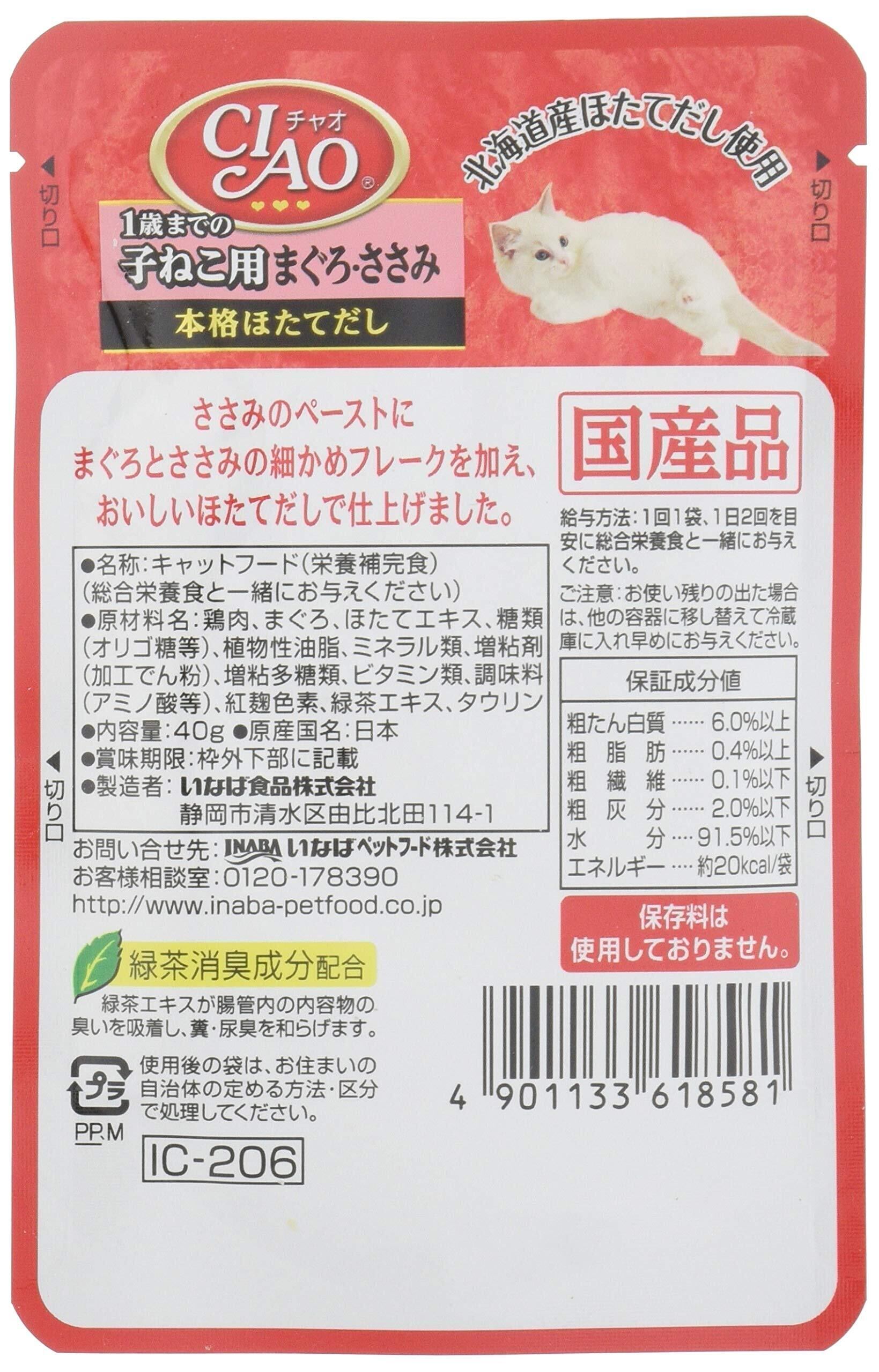 チャオ (CIAO) パウチ 1歳までの子ねこ用 まぐろ・ささみ 40g 16個セット
