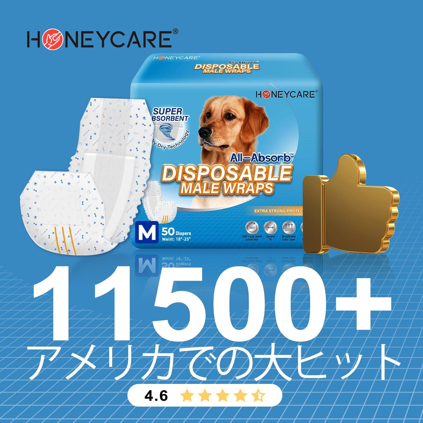 HONEYCARE ハニーケア 犬 おむつ 男の子用マナーおむつ おしっこ用 50枚入り ペット用 高吸収性 柄付き (M)