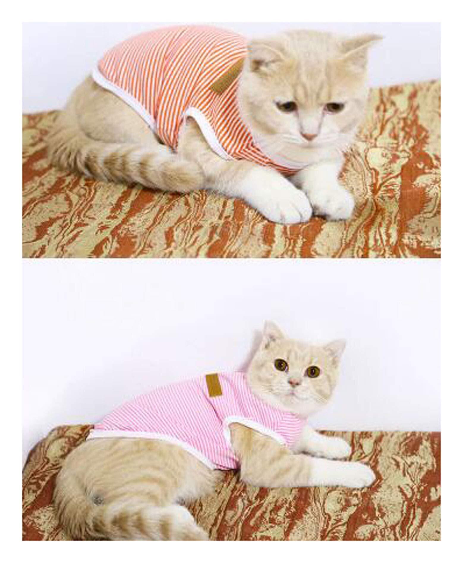 ふく福 可愛い 綿製 小中型犬服ストライプ Tシャツ 犬服 ドッグウェア ベスト お散歩 春夏服 カジュアル ファッションネイビー風 (L, オレンジ)