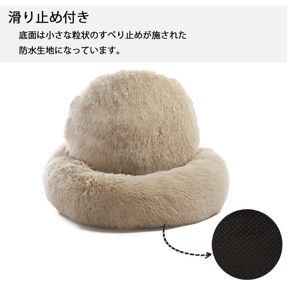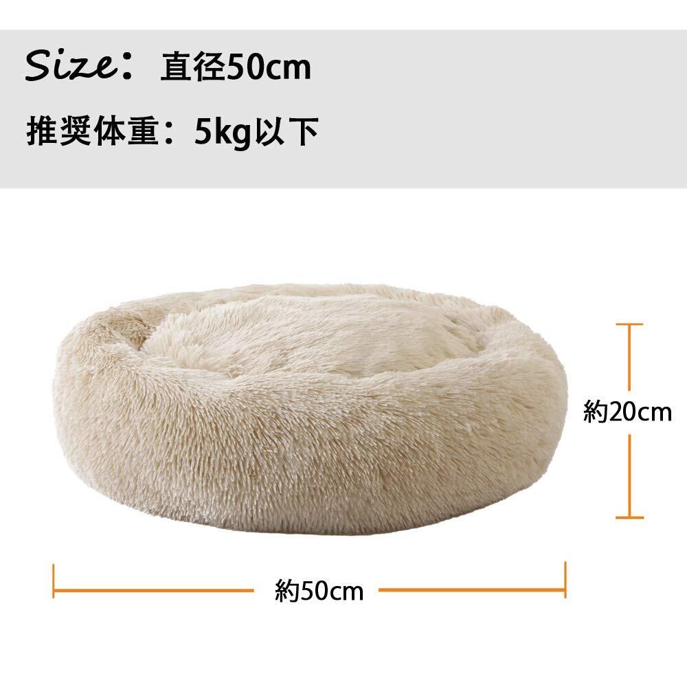 Peto-Raifu ペットベッド ペットクッション ペットマット ペットソファ ラウンド型 丸型 ドーナツペットベッド ぐっすり眠る ふわふわ もこもこ 暖かい 滑り止め 防寒 寒さ対策 洗える 猫用 小型犬用 ペット用品 4サイズ選択可 ベージュ 直径約50cm