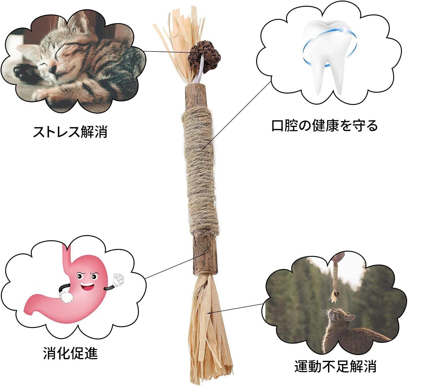 【猫ちゃんの歯のクリーニング】またたびの木を噛むことで、歯のクリーニング効果が期待でき、猫ちゃんの歯に良い猫噛む玩具です。また、猫の歯が伸びすぎるのを防ぎます。