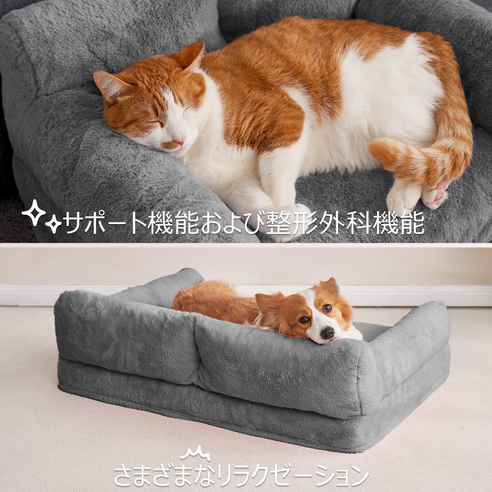 EHEYCIGA 猫 犬 ベッド ペット ベッド ふわふわ 暖かい もこもこ 冬寒さ対策 猫 犬 ソファ ペットクッション ペットソファ 洗える ぐっすり眠る 小型犬 中型犬 防水 (61x45x25.5cm ,グレー)