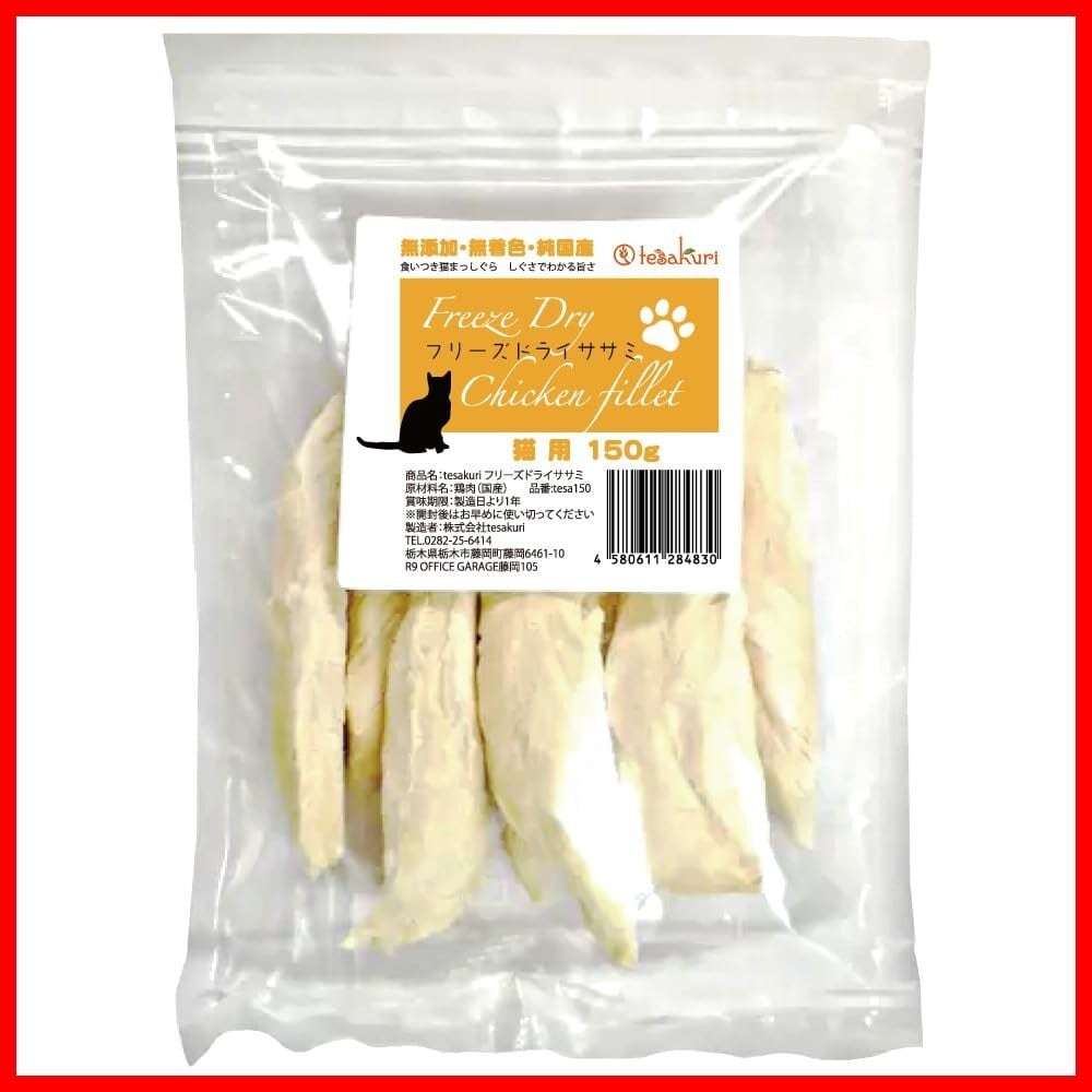 tesakuri フリーズドライ ささみ 150g(150gx1袋) 猫 犬 国産 食肉用素材 鶏肉 国内加工 無添加 無着色 スナギモ・レバー好きに ねこ いぬ (袋は、こだわりのバリアフィルム、チャック付きです。) (150g)