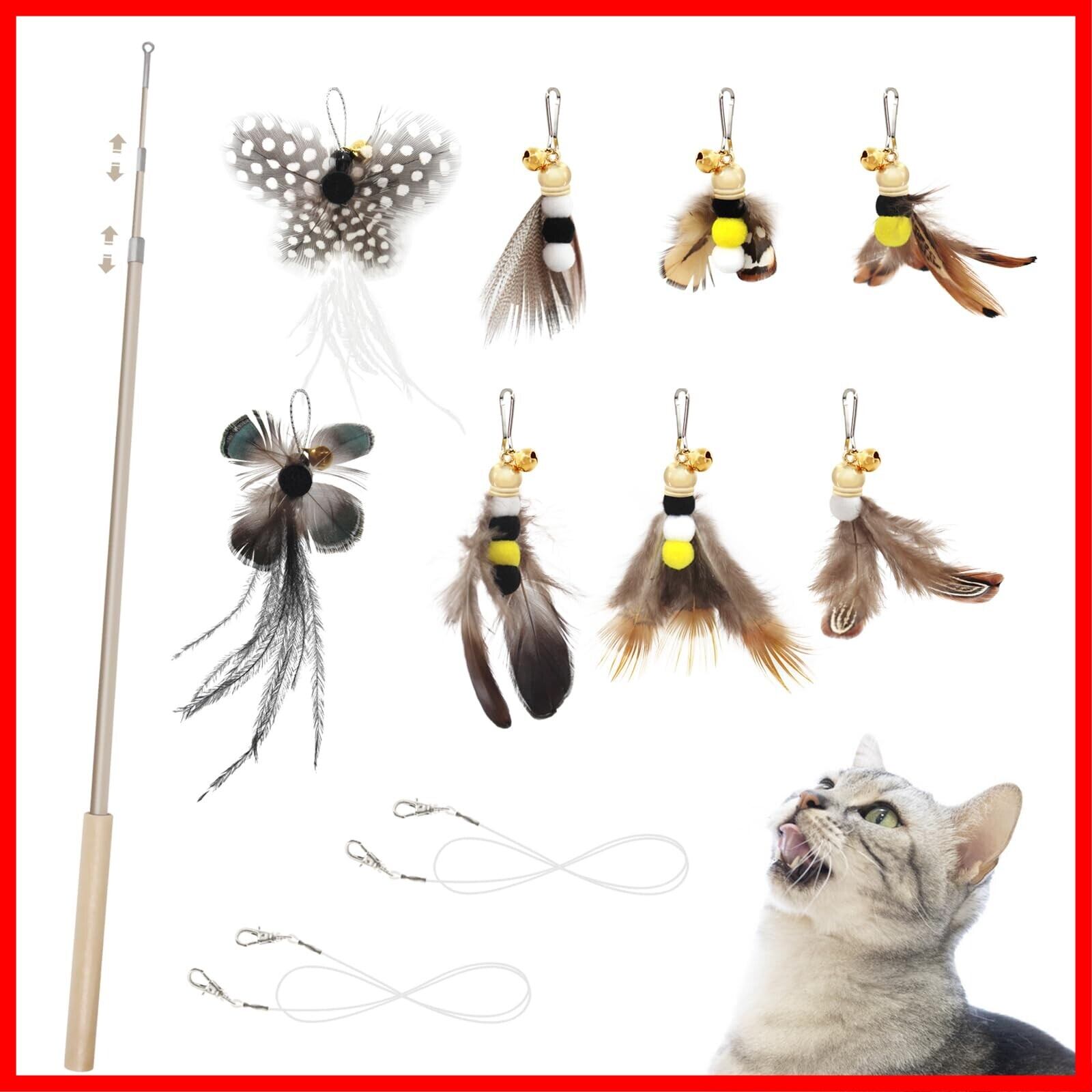 猫のおもちゃ:天然の羽で作った小飛ぶ虫*8、猫ちゃんの好みによって、じゃらしを取り替えることができます。愛猫はきっと夢中になるはずです。