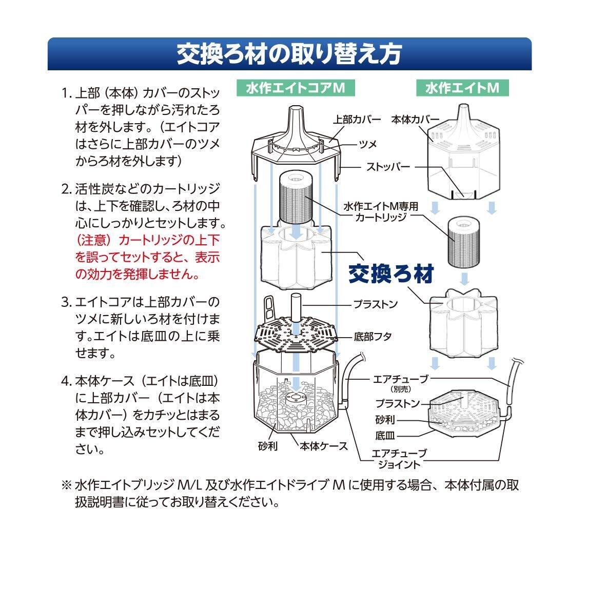 水作エイト コア M専用の交換用ろ過材です。従来の水作エイト Mや水作エイトブリッジ Mにもご利用頂けます。丈夫で型崩れしづらい特殊マットを使用しております。交換用や、予備として持っておくのもおすすめです。