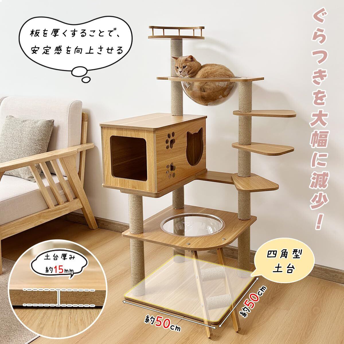 【2022最新】日本メーカー RAKU 猫タワー 木製キャットタワー 据え置き シニア猫 太った猫 短足猫 子猫向け 透明ボウル 宇宙船付き 高さ約130 cm 多頭飼い ねこ部屋付き 安定性 組み立て簡単 日本語説明書付き(木製タイプJ) | カウカウ物販
