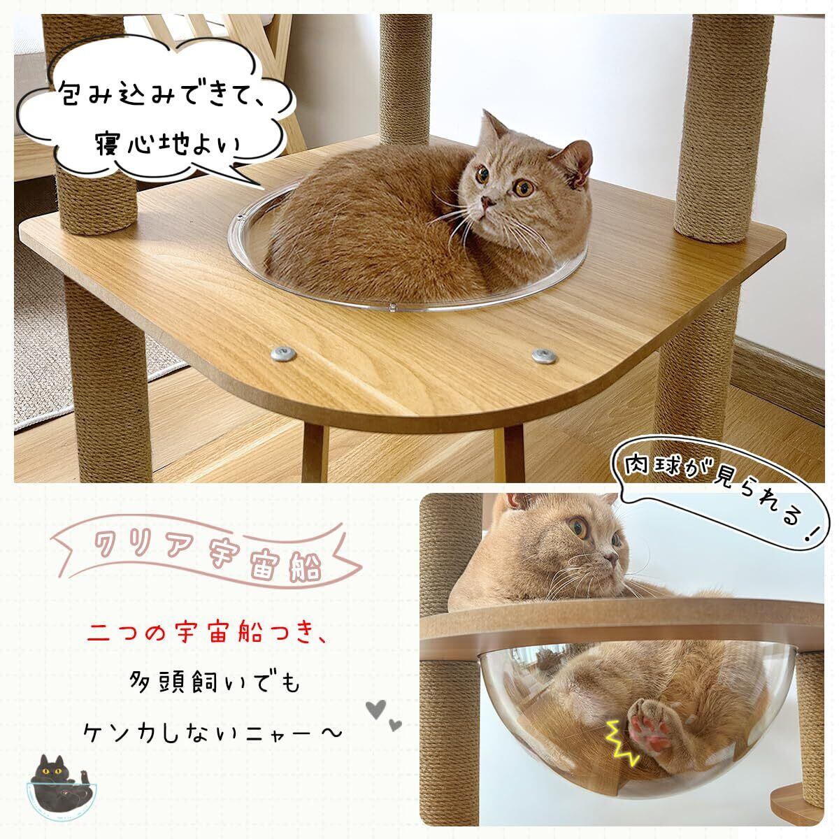 日本メーカー RAKU 猫タワー 木製キャットタワー 据え置き シニア猫 太った猫 短足猫 子猫向け 透明ボウル 宇宙船付き 高さ約130 cm 多頭飼い ねこ部屋付き 安定性 組み立て簡単 日本語説明書付き(木製タイプJ)