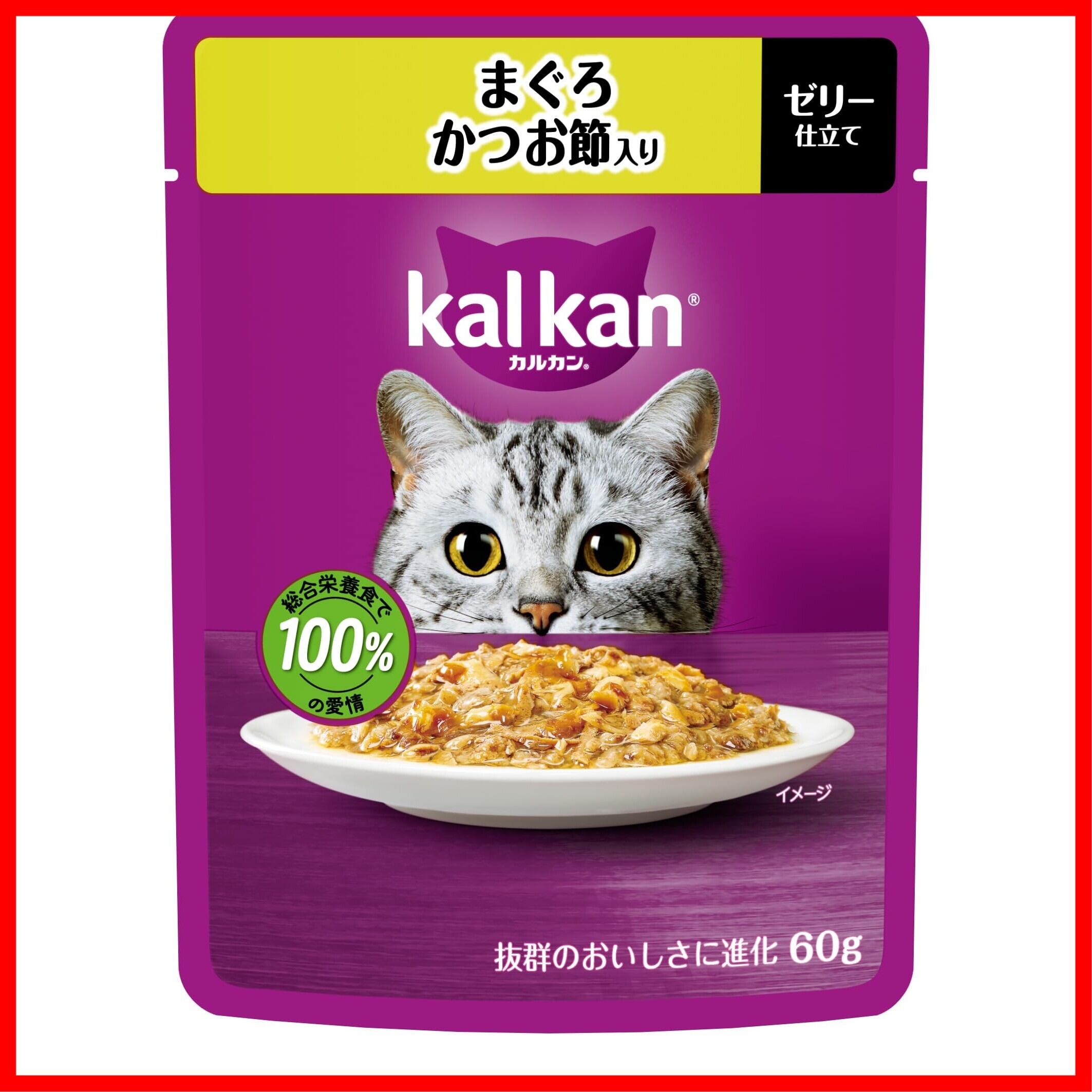 抜群のおいしさに進化!厳選されたまぐろに、かつお節を加えカルカン特製だしで煮込み、ジューシーなゼリー仕立てにしました。1歳以上の猫に必要な栄養素がバランスよく含まれた総合栄養食です。