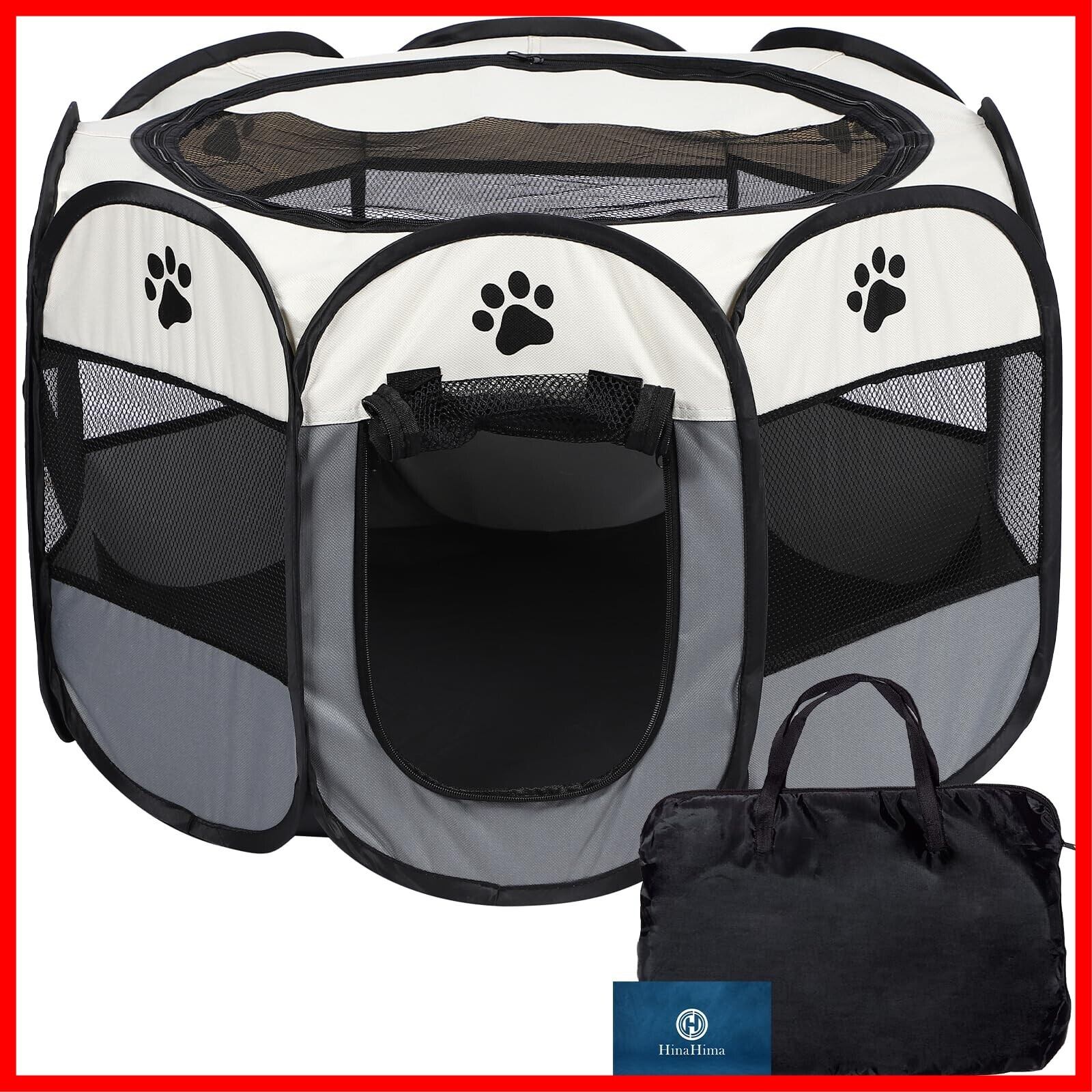 HinaHima 折りたたみ式 ペットサークル 収納バッグ付き 組み立て不要 猫 犬用 ケージ 幅74cm×高さ43cm (M, グレー)