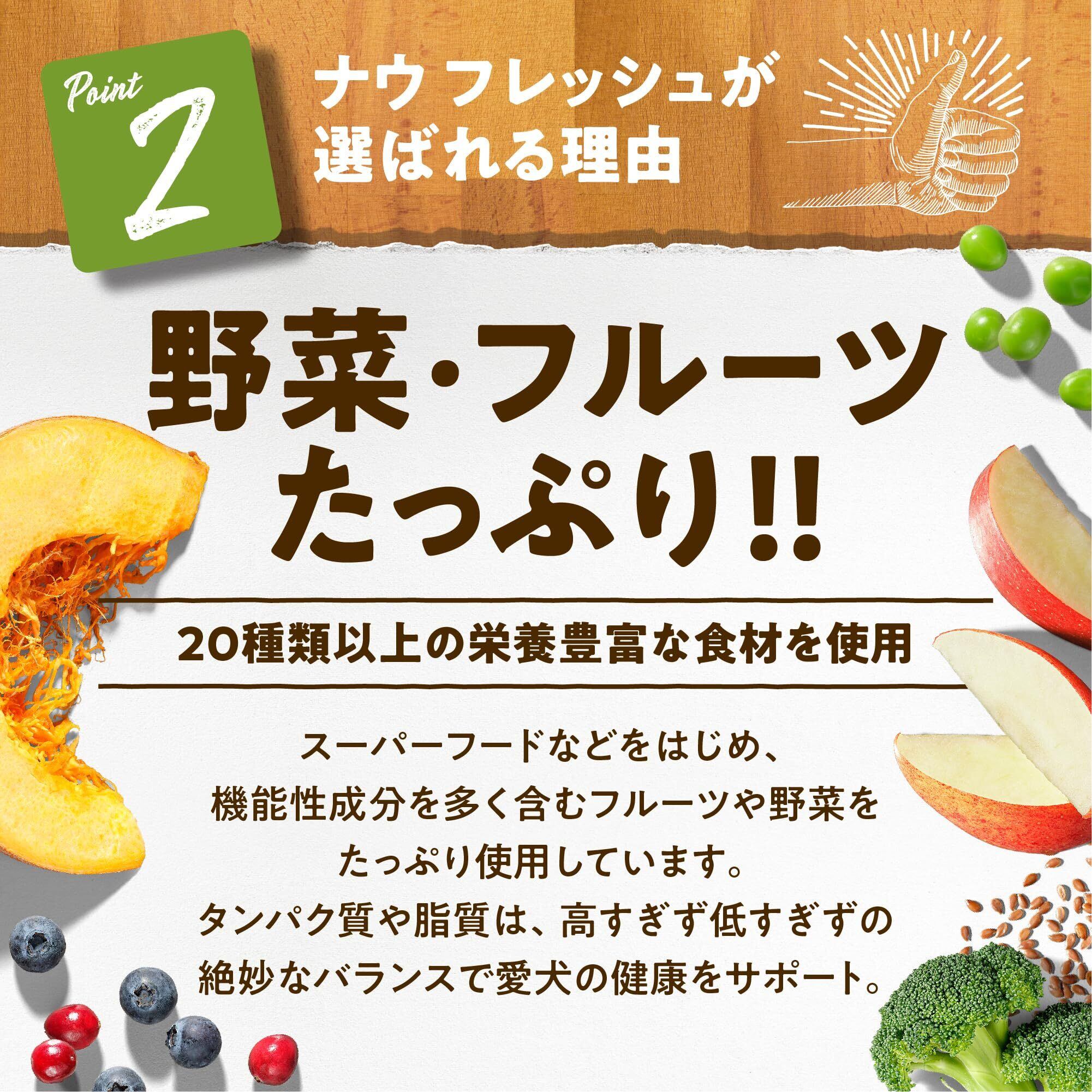 【新鮮という品質をお届け】ナウフレッシュは、家族の大切な一員である愛犬のために、トコトン新鮮にこだわったナチュラル×ミールフリーのプレミアムフードです。